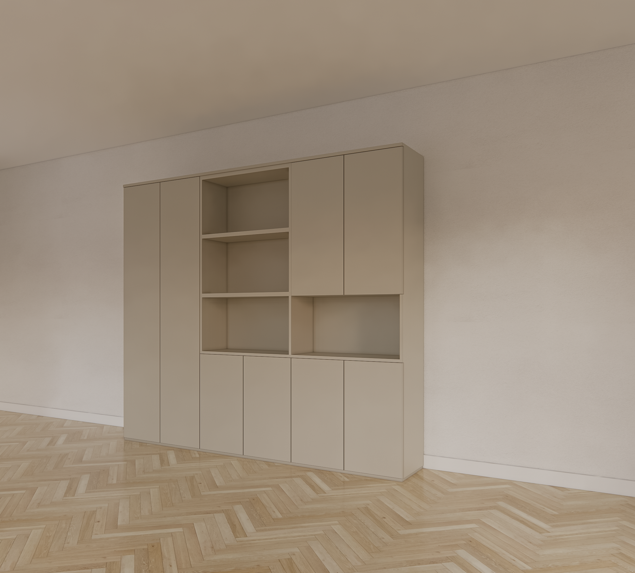 Außerdem bieten wir die Möglichkeit, den Schrank nach Maß anfertigen zu lassen. Wenn die Standardmaße nicht ganz zu Ihrem Raum passen, oder Sie eine bestimmte Aufteilung oder Anpassung wünschen, können wir den Schrank komplett nach Maß entwerfen. Auf diese Weise erhalten Sie ein Regal, das nicht nur perfekt aussieht, sondern auch alle Ihre Anforderungen in Bezug auf Funktionalität und Größe erfüllt.