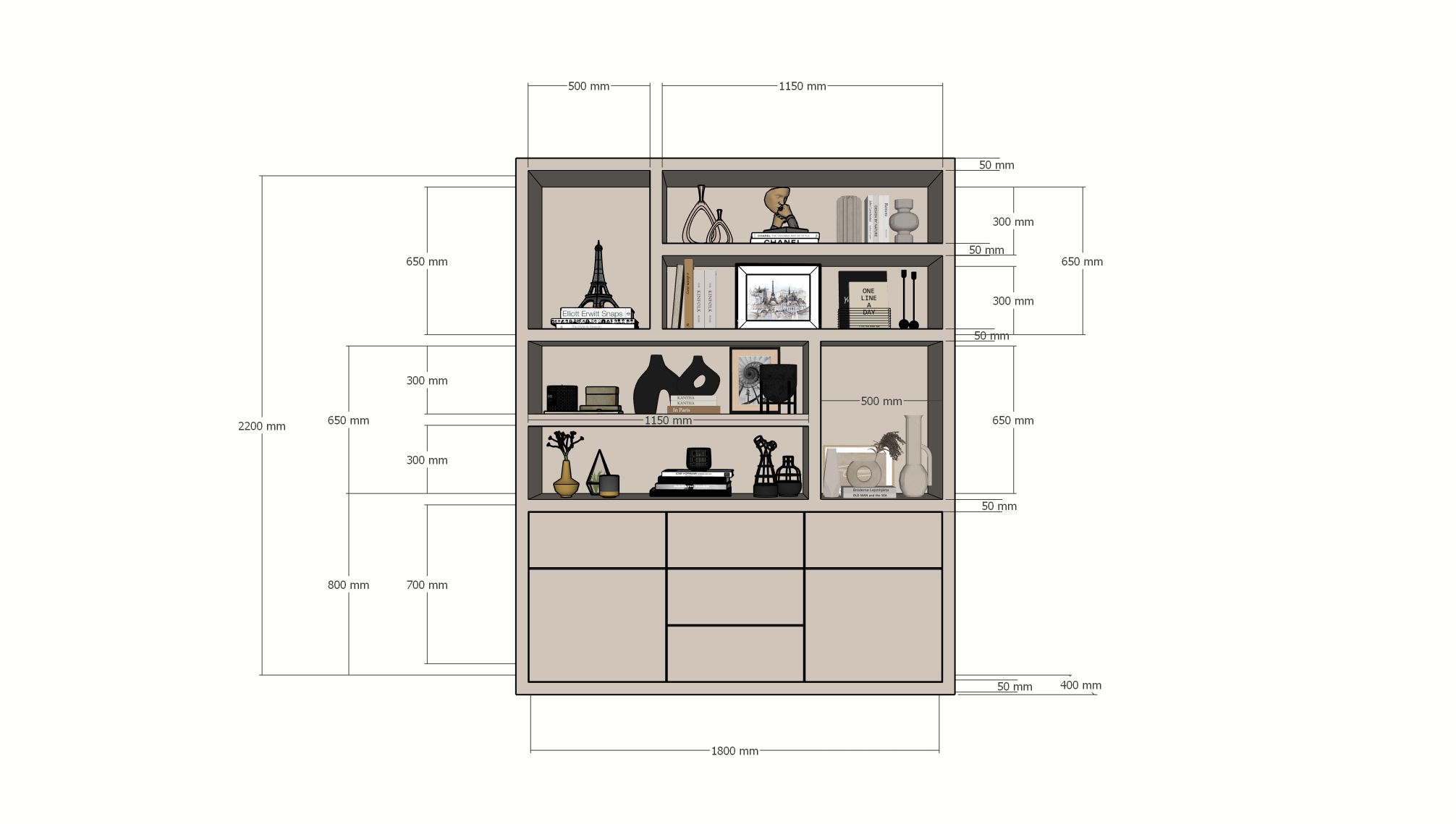 >Mit einer Fachbodenstärke von 5 cm ist der Schrank nicht nur robust, sondern auch ein Zeichen von Qualität und Luxus. Die verschiedenen Fächer, Schubladen und Türen bilden eine lustige und funktionelle Kombination, die es Ihnen ermöglicht, Ihre Sachen effizient zu organisieren und gleichzeitig ein attraktives Möbelstück in Ihrem Zuhause zu haben.
