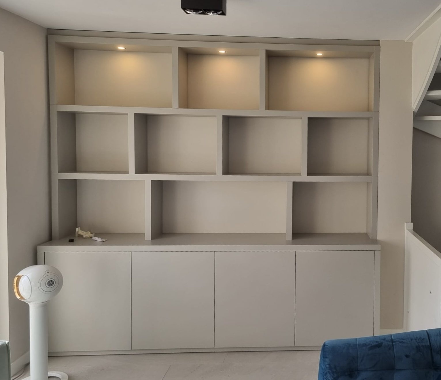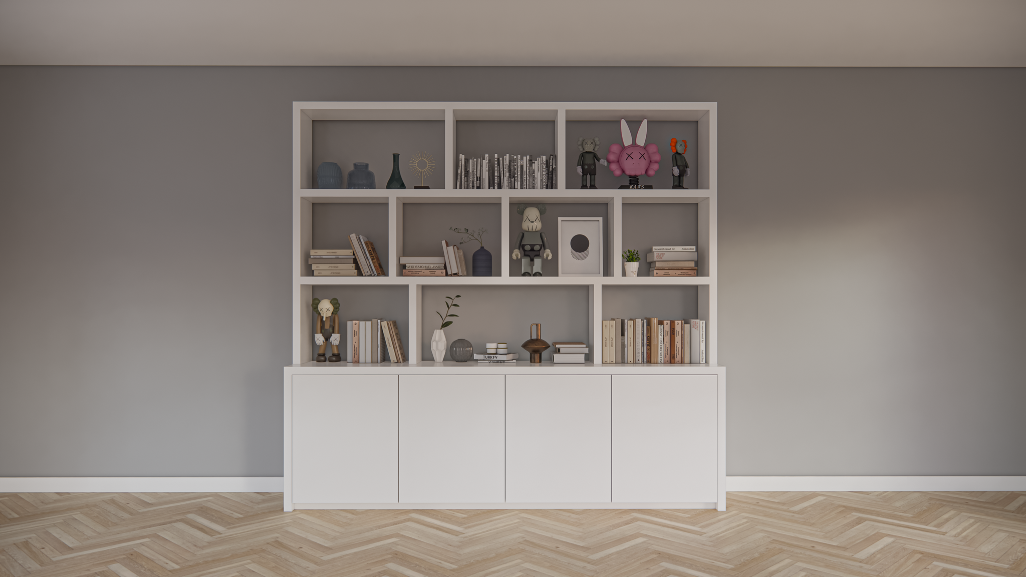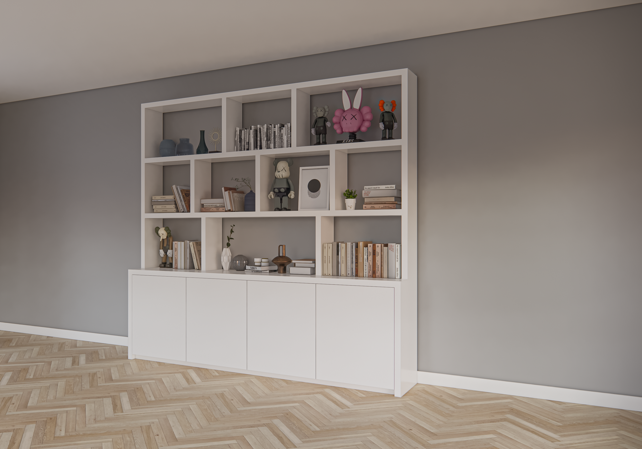 Dieses Design verleiht dem Schrank ein dynamisches Element und macht ihn nicht nur funktional, sondern auch zu einem Statement in Ihrem Interieur.