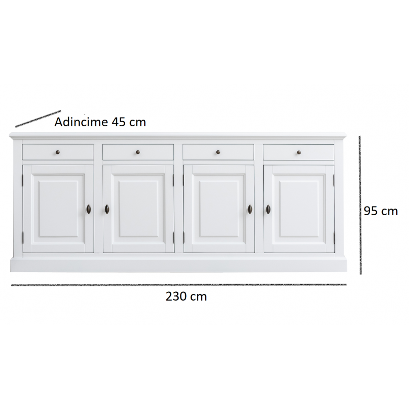 Suchen Sie nach einem Sideboard, das viel Stauraum bietet? Das ist die Kommode Brela. Diese Anrichte zeichnet sich durch ihr rustikales Finish aus und verfügt über 4 Flügeltüren und 4 Schubladen, die auf einem Soft-Close-Schienensystem laufen. Bestellen Sie das Sideboard Brela in Weiß oder einem anderen Farbton. Alle RAL-Farben sind möglich!