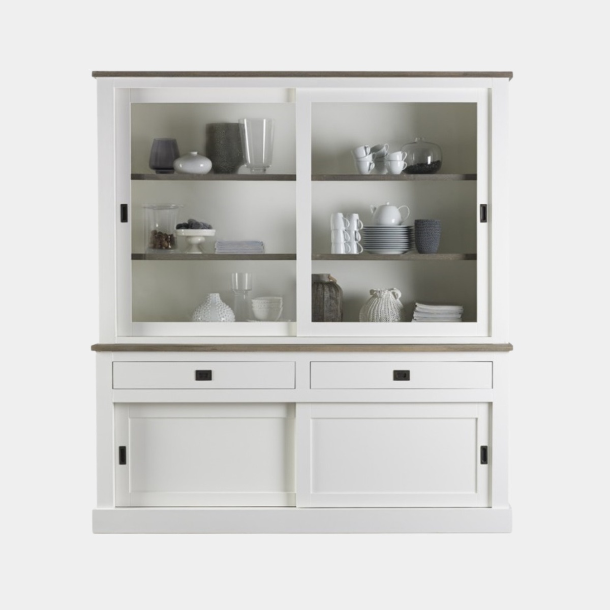 Buffetschrank Brooklyn 03 - 180x50x220H cm - schlichtes Design - Eichenplatte und Zwischenboden - 2 Glasschiebetüren - 2 Soft-Close-Schubladen - 2 geschlossene Flügeltüren