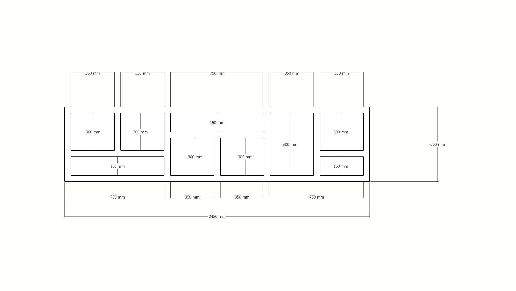 Beistelltisch/Kommode Prato 02 - 245x30x60H cm - 5cm Regalstärke - offene Regale Sideboard