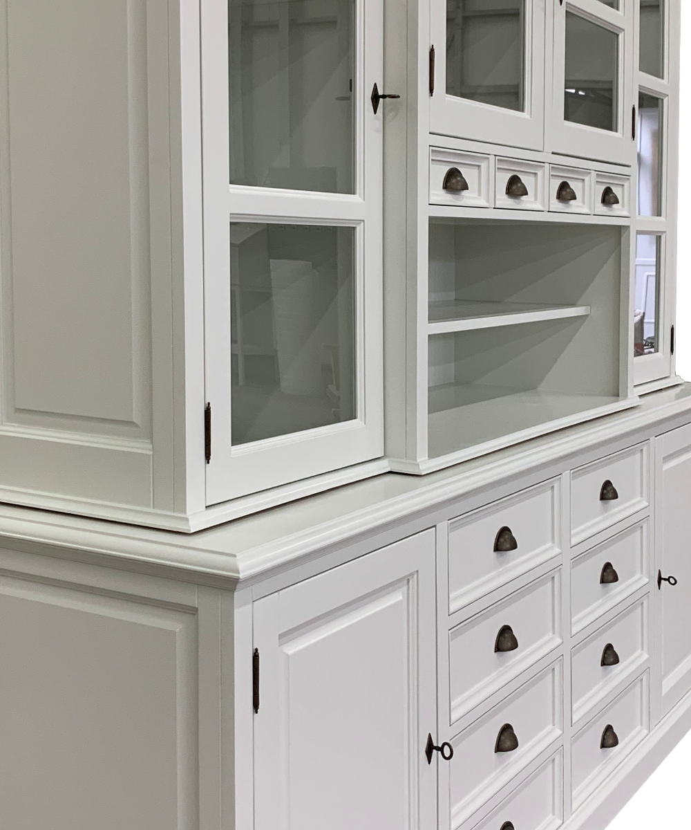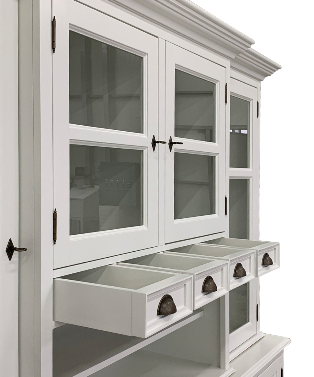 Buffetschrank San Pietro - 235x55x225H cm - 4 Flügeltüren - 4 kleine Schubladen - offenes Fach - 8 große Schubladen mit So