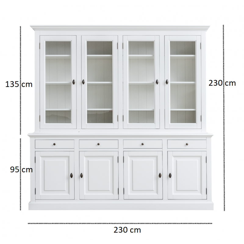 123schrank Buffetschrank Santa Barbara - 230x45x230H cm - 4 Vitrinentüren mit Scharnieren - 4 Schubladen mit Soft Close - 4 geschlossene Türen mit Scharnieren - verstellbare Einlegeböden