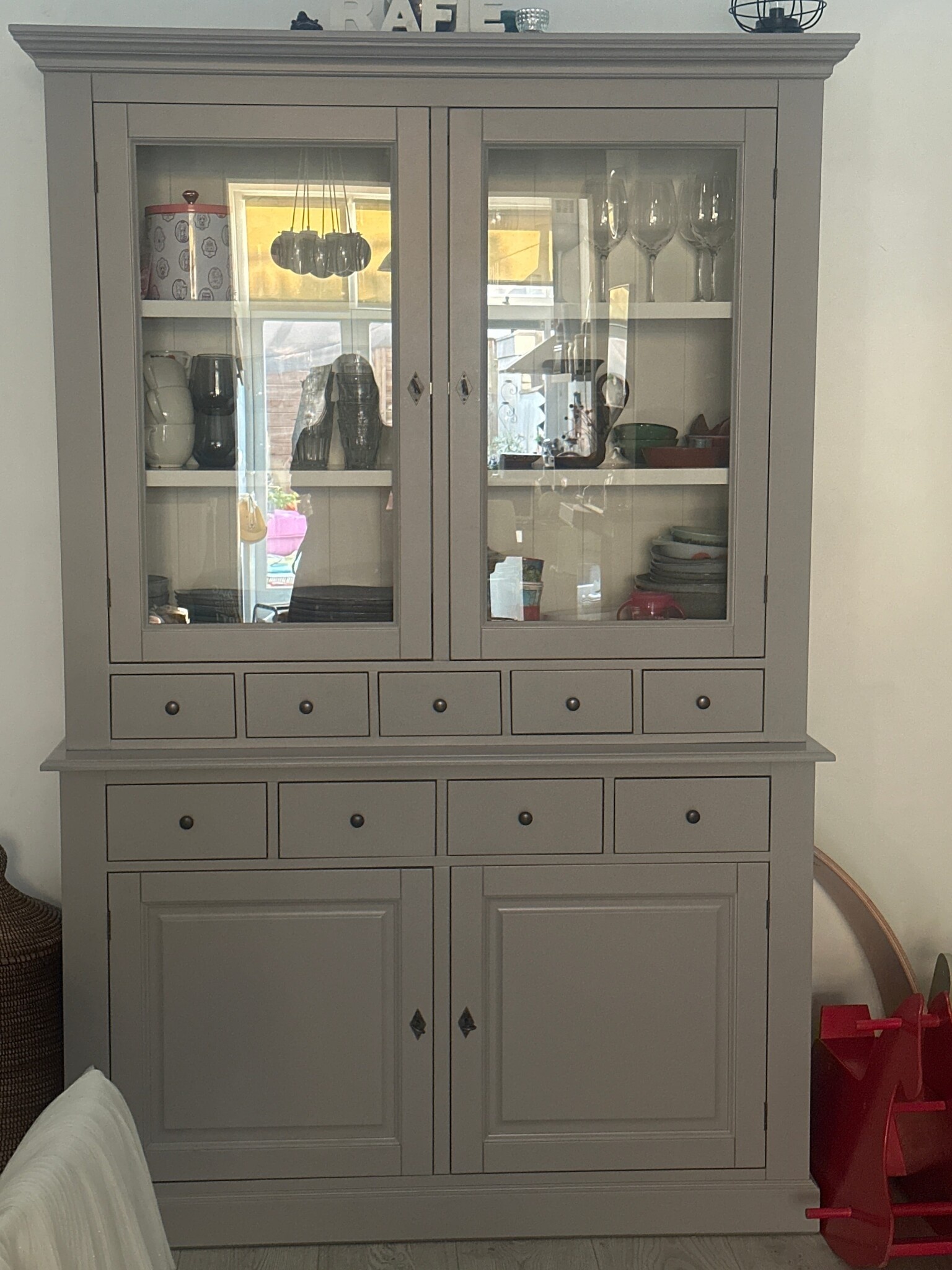 Ein Schrank, der viele Einrichtungswünsche erfüllt? Das ist das Landhaus-Sideboard Santa Monica! Mit diesem Schrank haben Sie viel Stauraum und können Ihr Geschirr, Ihre Gläser und Ihre Wohnaccessoires schön präsentieren. Diese rustikale Anrichte hat 5 Schubladen im oberen Schrank und 4 Schubladen im unteren Schrank. Die Einlegeböden hinter den Gläsern des Buffets sind verstellbar und können auf die gewünschte Höhe eingestellt werden. Bestellen Sie es in einer beliebigen RAL-Farbe. Dieses Sideboard wartet auf Sie!