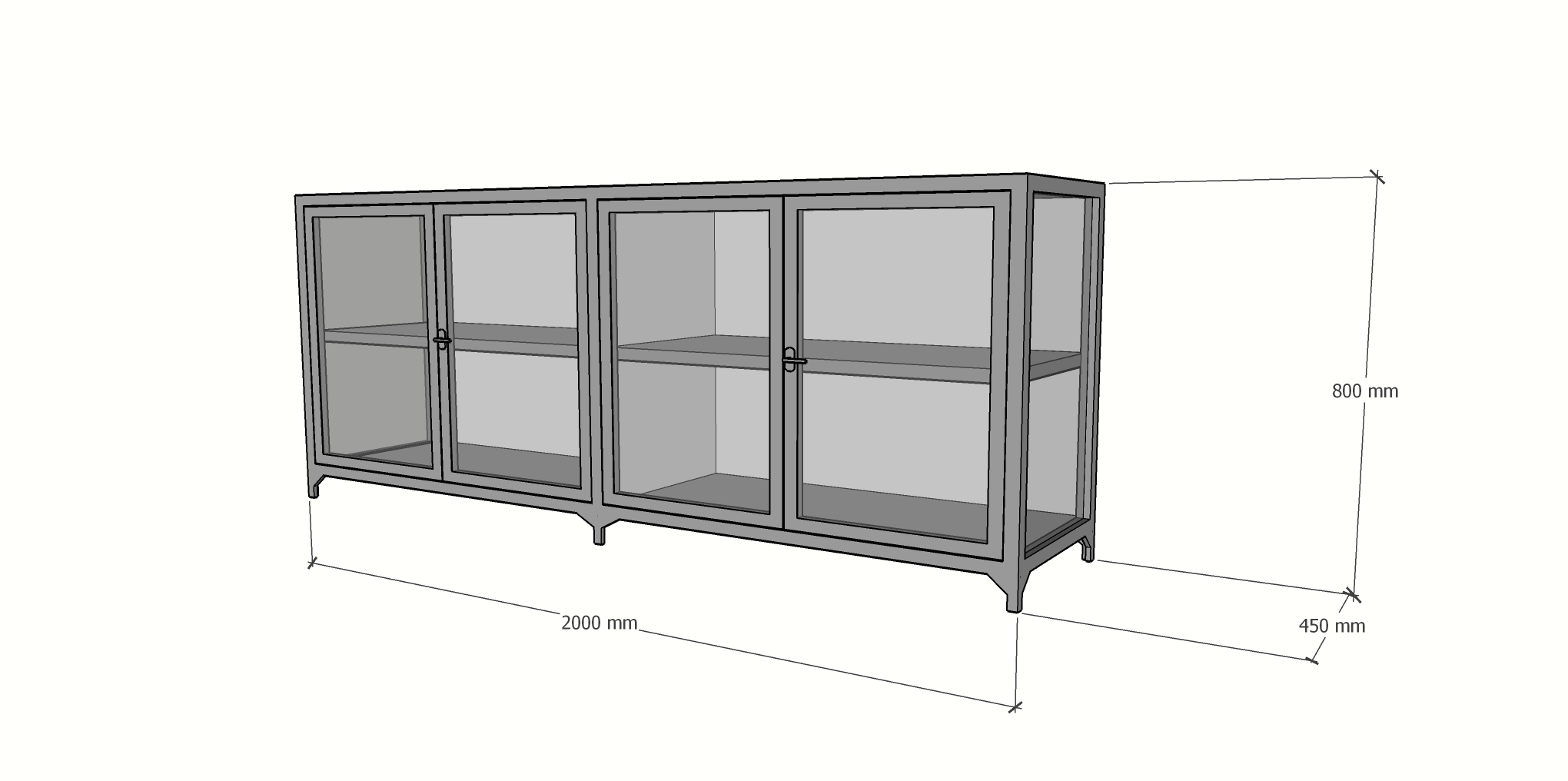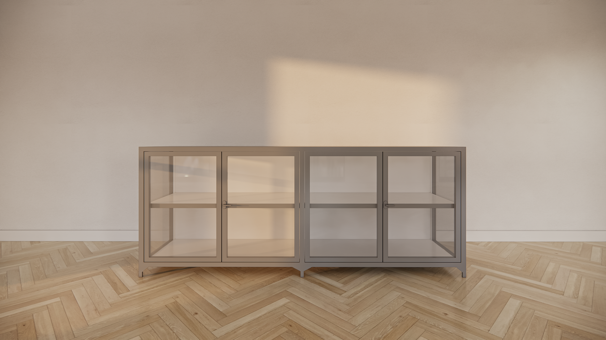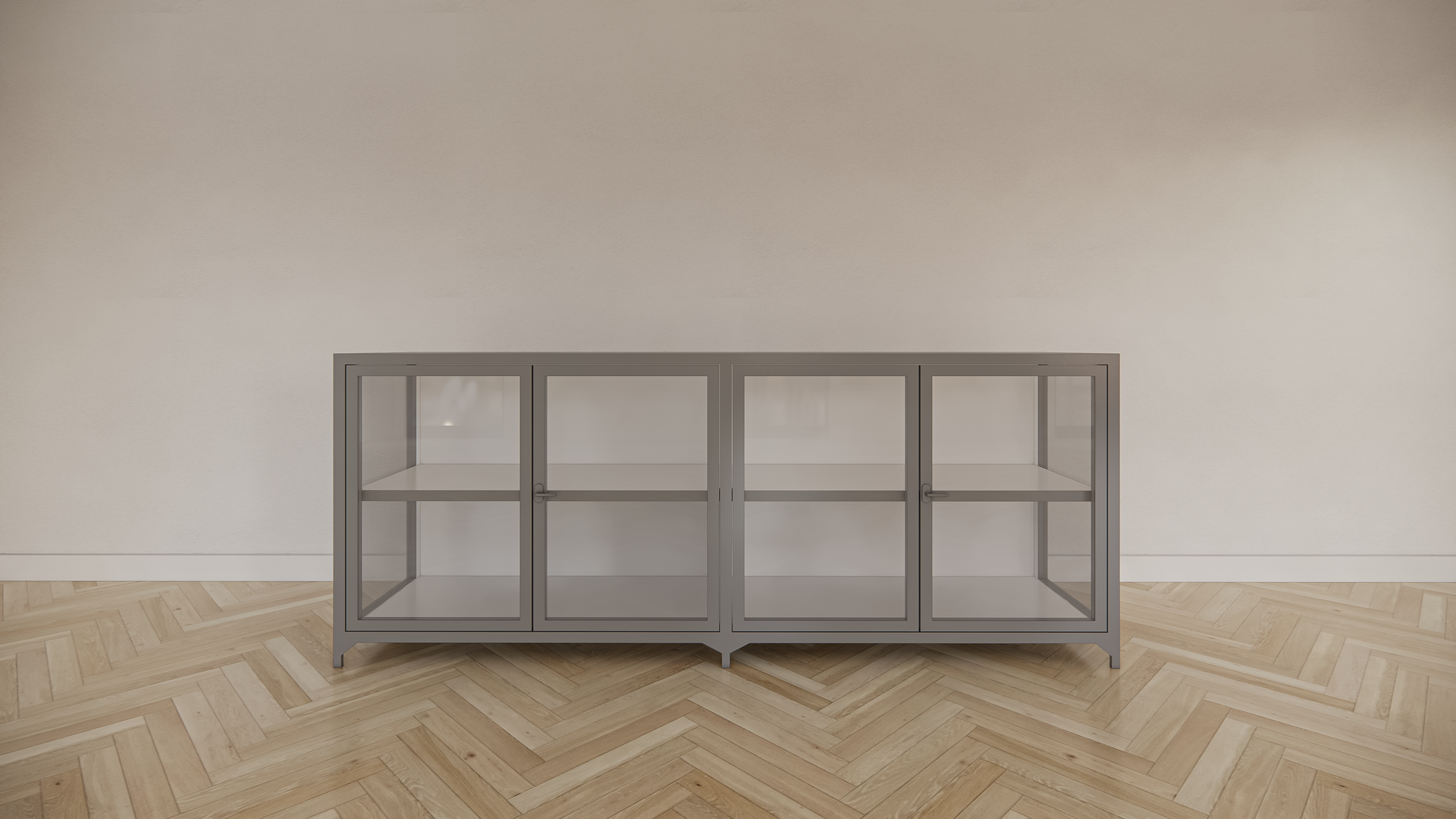 >Mit den Maßen 200x45x80H cm bietet das Belo Sideboard/Regal reichlich Platz zum Aufbewahren und Ausstellen, egal ob im Wohnzimmer, in der Küche oder im Einzelhandel. Die vier Flügeltüren ermöglichen einen einfachen Zugriff auf den Inhalt, während das Ganzglasdesign ein leichtes und luftiges Gefühl erzeugt.
