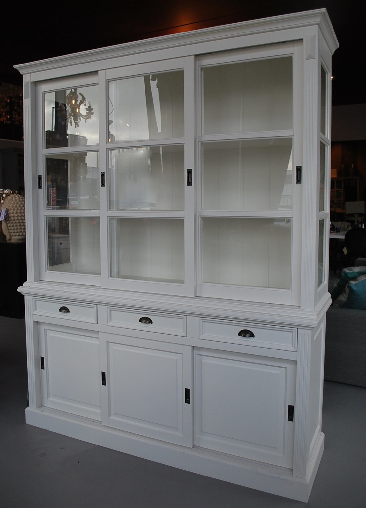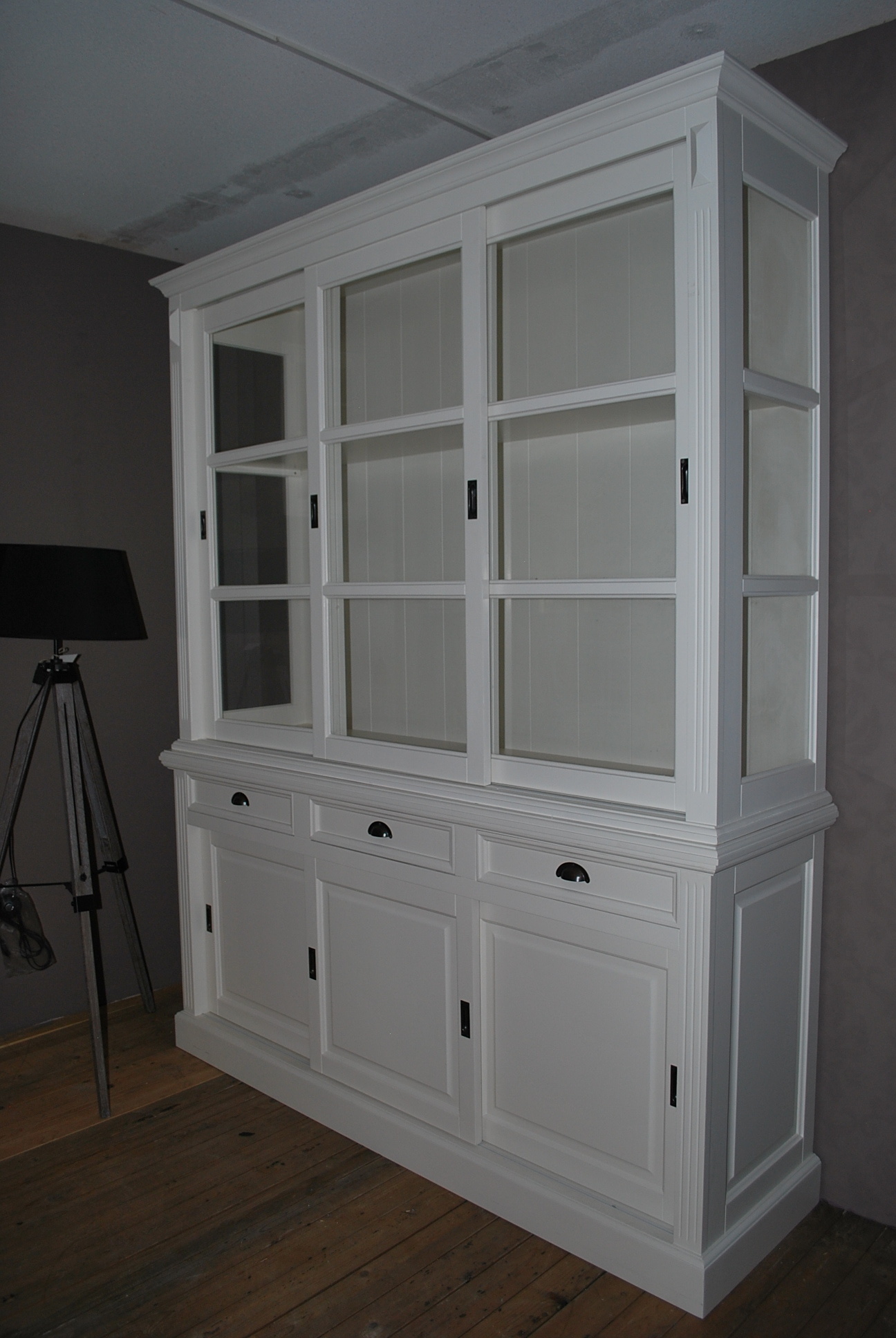 Ein Schrank, der viele Einrichtungswünsche erfüllt? Das ist das South Hampton Country Sideboard! Mit diesem Schrank haben Sie viel Stauraum und können Ihr Geschirr, Ihre Gläser und Wohnaccessoires schön präsentieren. Dieses rustikale Sideboard hat Seiten aus Glas, wodurch es viel Licht erhält. Die 6 Schiebetüren verleihen dem Schrank ein attraktives Aussehen. Bestellen Sie es in einer beliebigen RAL-Farbe. Dieses Sideboard wartet auf Sie!