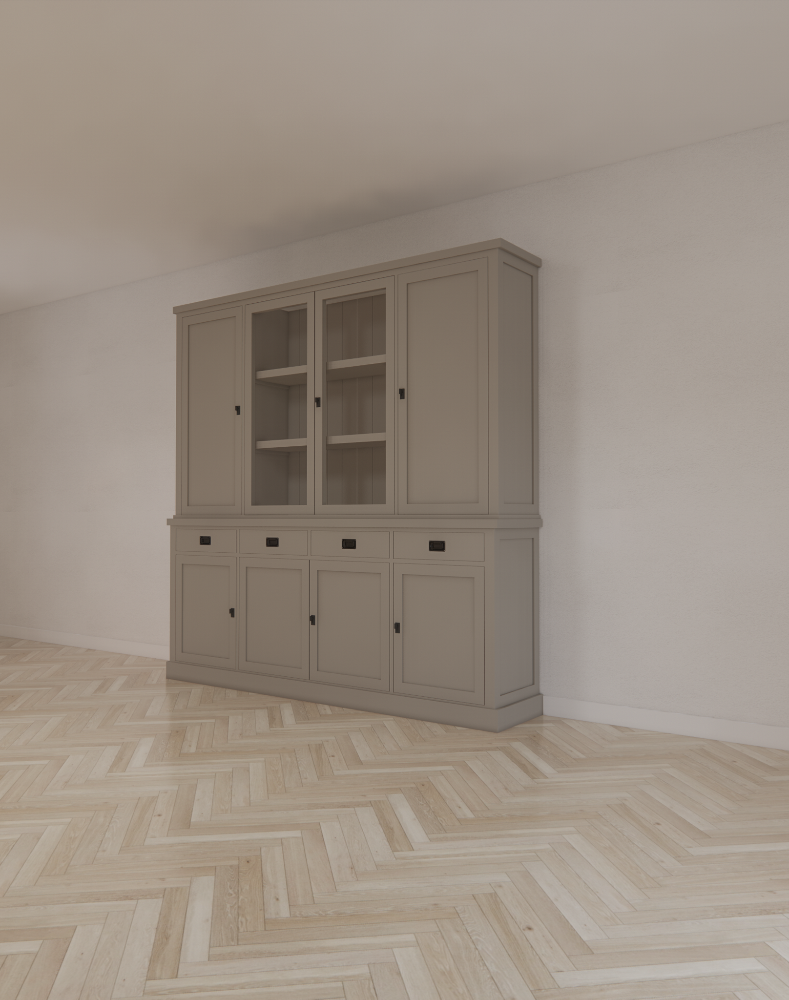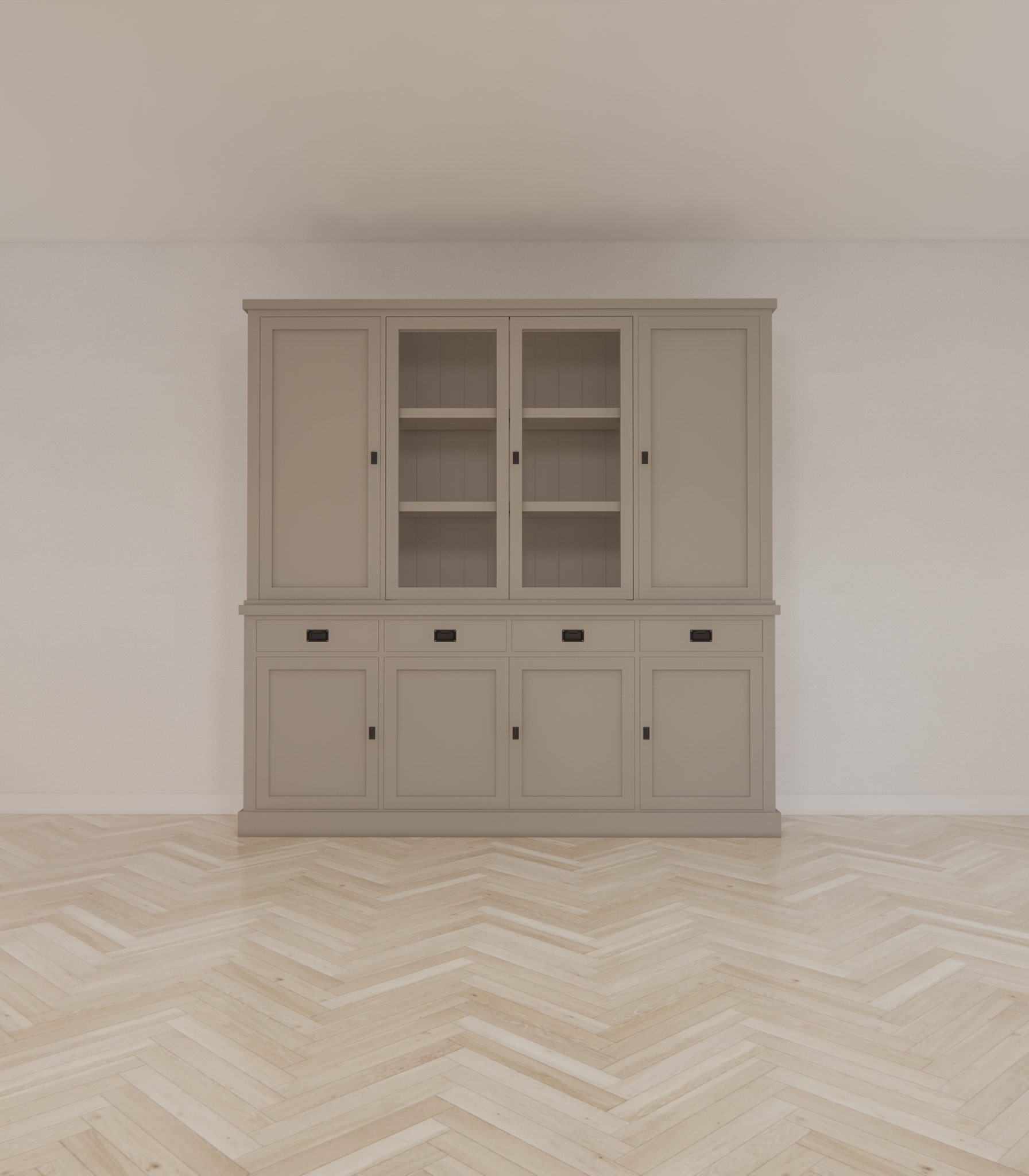 Buffetschrank Vancouver - 220x45x220H cm - 2 geschlossene Türen im Oberschrank - 2 Vitrinentüren - 4 Soft-Close-Schubladen - 4 geschlossene Türen im Unterschrank