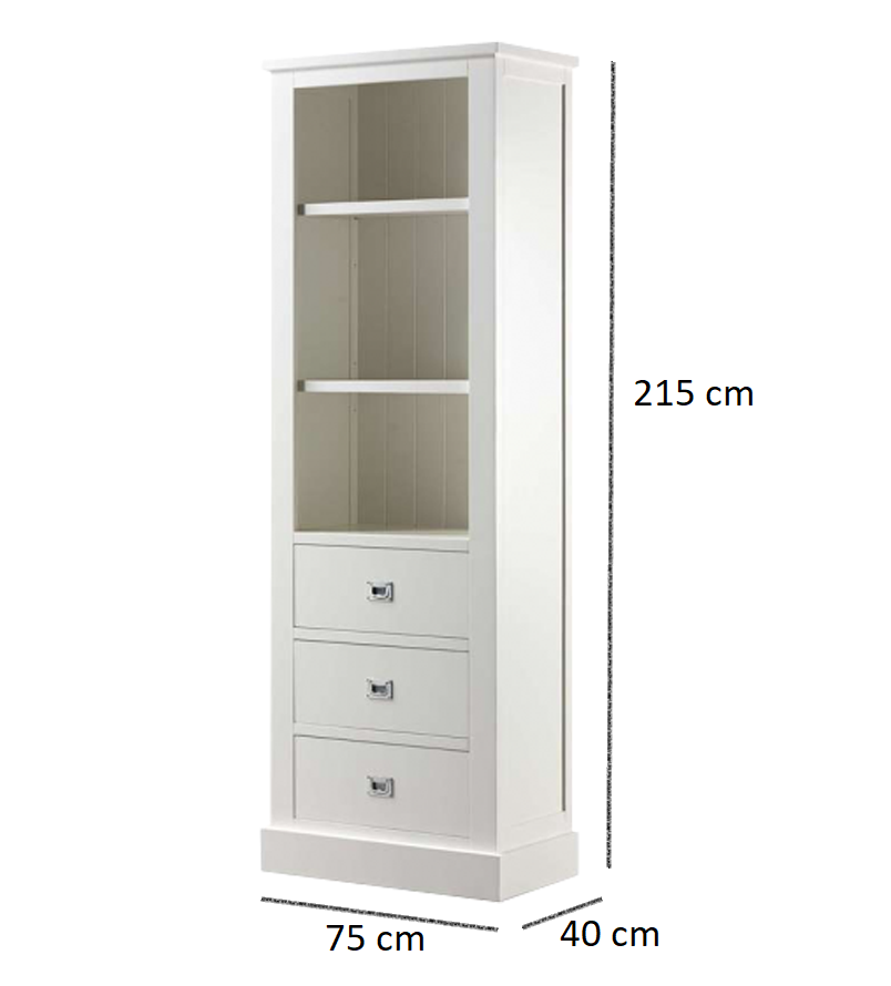123schrank Bücherregal Island 09 - 75x40x215H cm - 2 Fachböden - 3 Soft-Close-Schubladen