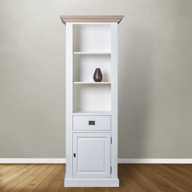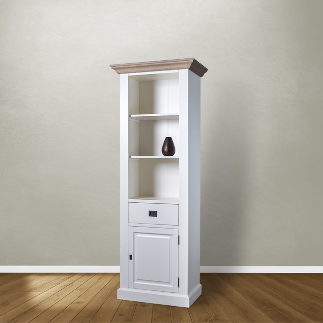 Bücherregal Sara 06 - 76x46x206H cm - Rahmen aus Eichenholz - 2 Einlegeböden - 1 Soft-Close-Schublade - 1 geschlossene Flügeltür