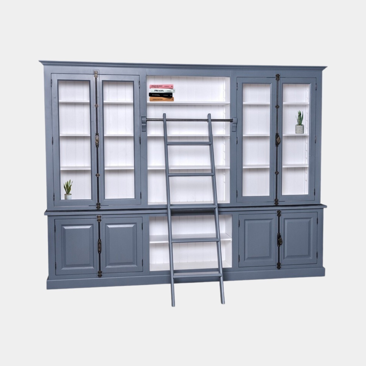 Bücherregal - Englische Bibliothek - 300x50x230H cm - mit Leiter - mit Glastüren - Drehstangenverschluss