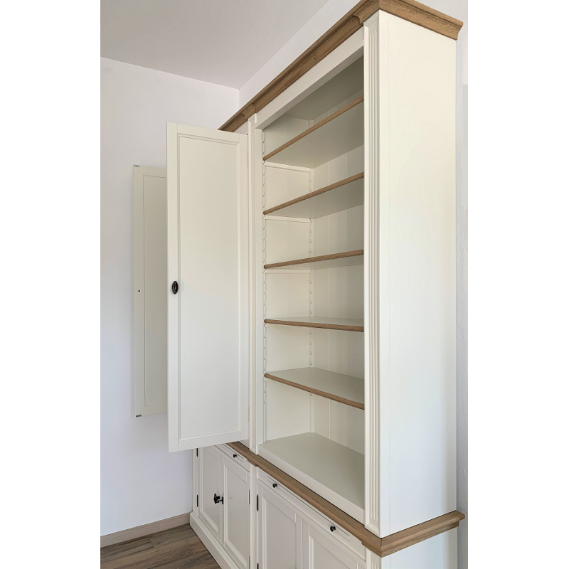 Bücherregal Moon - 200x43x240H cm - mit Eiche - 6 geschlossene Flügeltüren - 2 ausziehbare Fachböden - verstellbare Fachböden