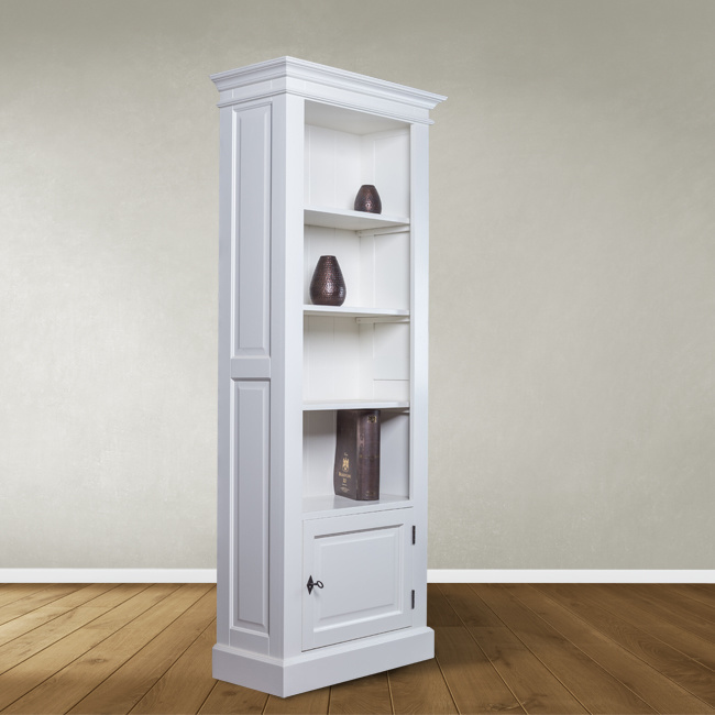Geben Sie Ihren Büchern oder anderen Leckereien einen schönen Platz in dem schmalen Venetia Bücherregal. Dieses kleine Bücherregal hat 3 Einlegeböden, die dafür gemacht sind, komplett mit Büchern gefüllt zu werden. Unter den Fächern hat das Regal eine Tür, die sich mit einem Schloss öffnen lässt. Das Bücherregal hat ein ländliches, stimmungsvolles Aussehen. Das Bücherregal Venedig kann in allen RAL-Farben bestellt werden. Können Sie sich das Regal schon in Ihrem Zuhause vorstellen?