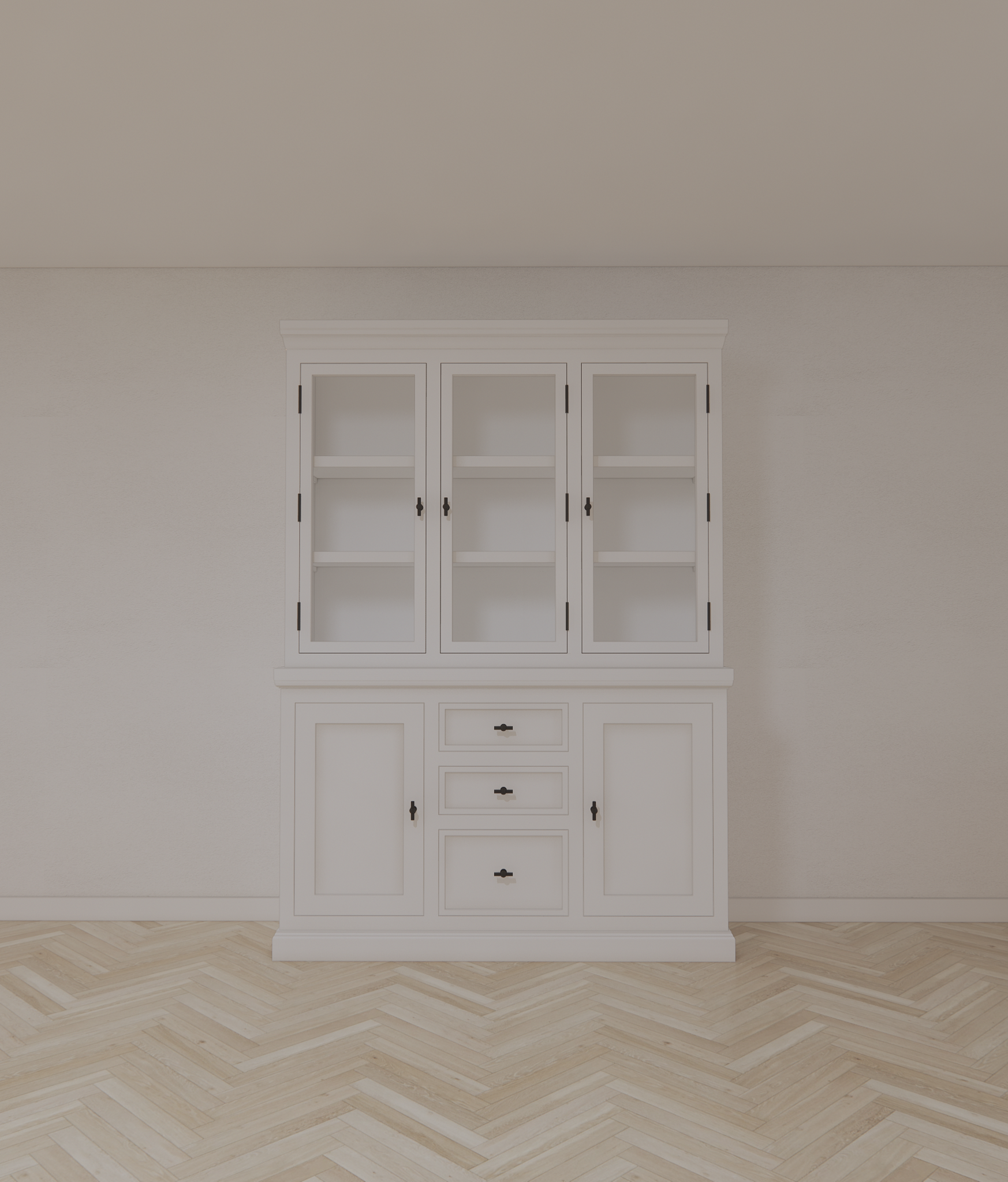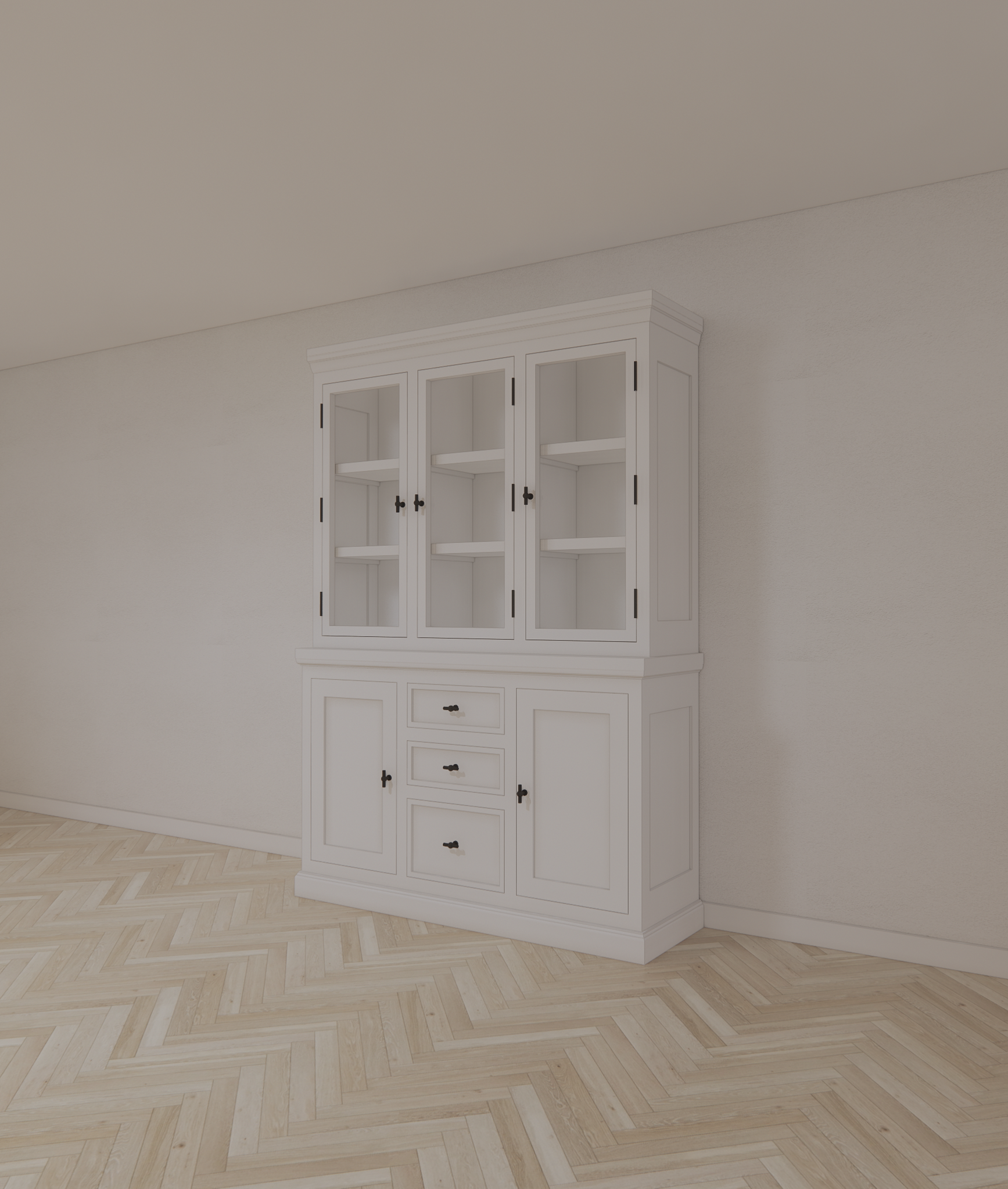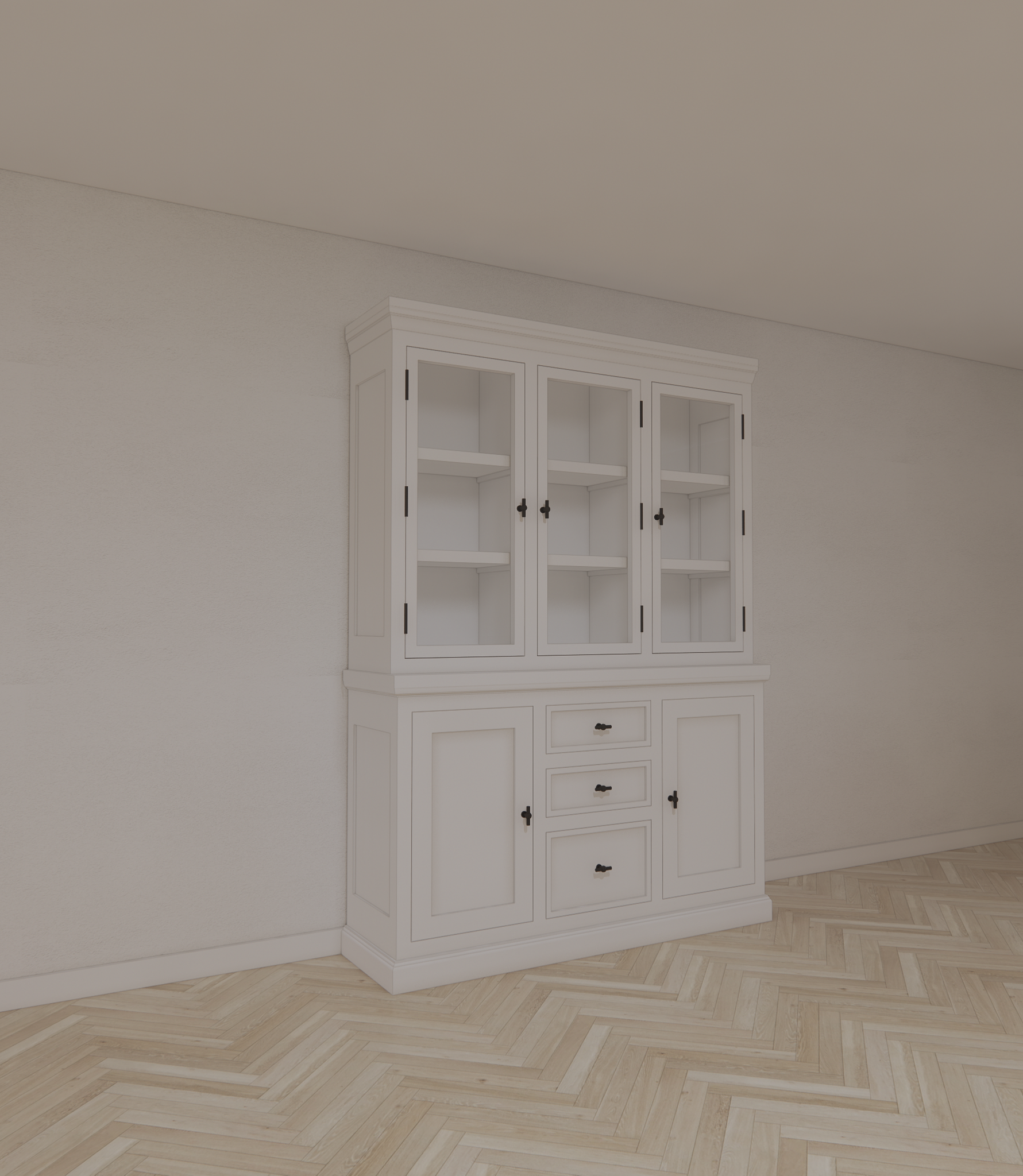 Buffetschrank Alaska 03 - 160x48x225H cm - schwarze Griffe - 2 geschlossene Türen - 3 Schubladen