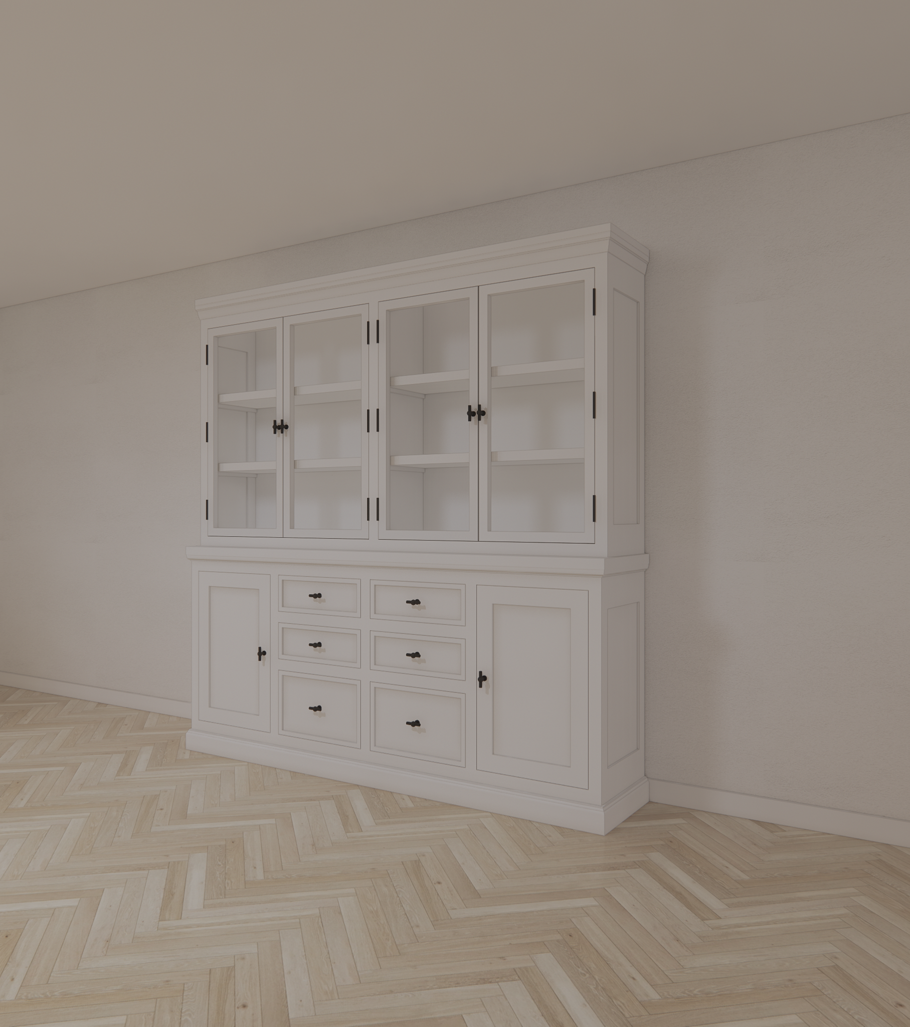 Wir wissen, dass jedes Haus einzigartig ist und dass Standardgrößen nicht immer Ihren speziellen Bedürfnissen entsprechen. Deshalb bieten wir Ihnen die Möglichkeit, alle unsere Schränke nach Maß anfertigen zu lassen, damit Sie eine perfekt passende Lösung erhalten, die ganz Ihren Bedürfnissen entspricht. Ganz gleich, ob Sie einen Schrank für einen kleinen Raum, eine ungewöhnliche Ecke oder einfach nur einen großen Stauraum benötigen, wir sind bereit, Ihre Anforderungen zu erfüllen. Teilen Sie uns Ihre Anforderungen per E-Mail mit, und unsere fachkundigen Designer werden Ihnen gerne ein maßgeschneidertes Angebot erstellen.