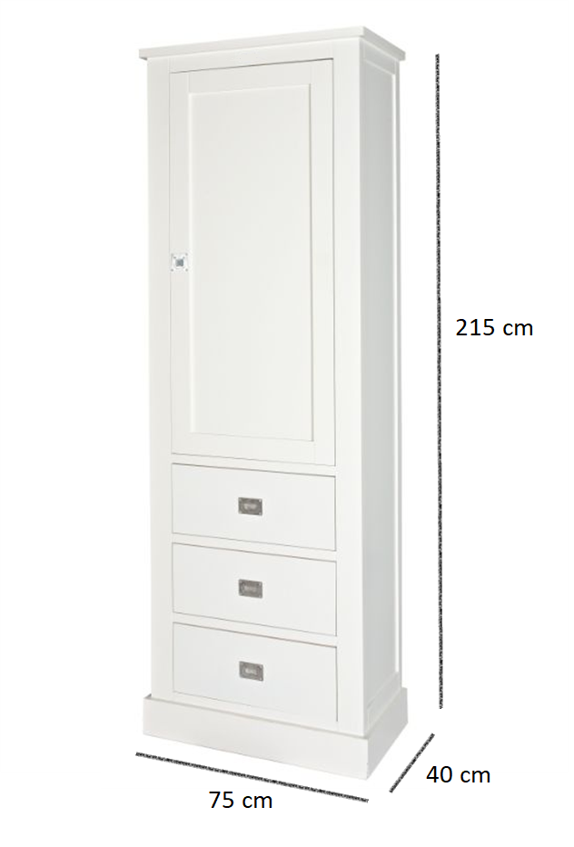 Buffetschrank Island 08 - 75x40x215H cm - 1 geschlossene Flügeltür - 3 Soft-Close-Schubladen