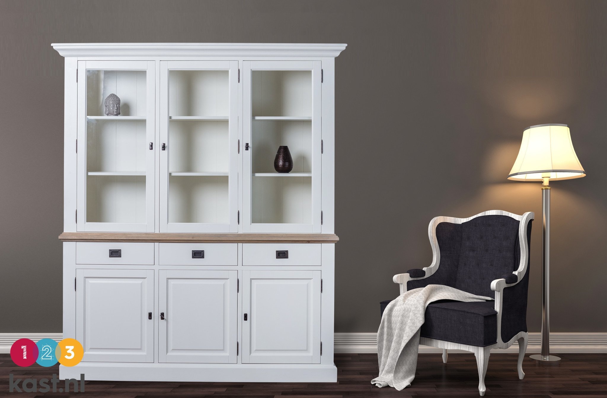 Buffetschrank Sara 01 - 180x46x206H cm - Eiche Zwischenboden - 3 Schranktüren mit Scharnieren - 3 Schubladen mit Soft Close - 3 geschlossene Scharniertüren
