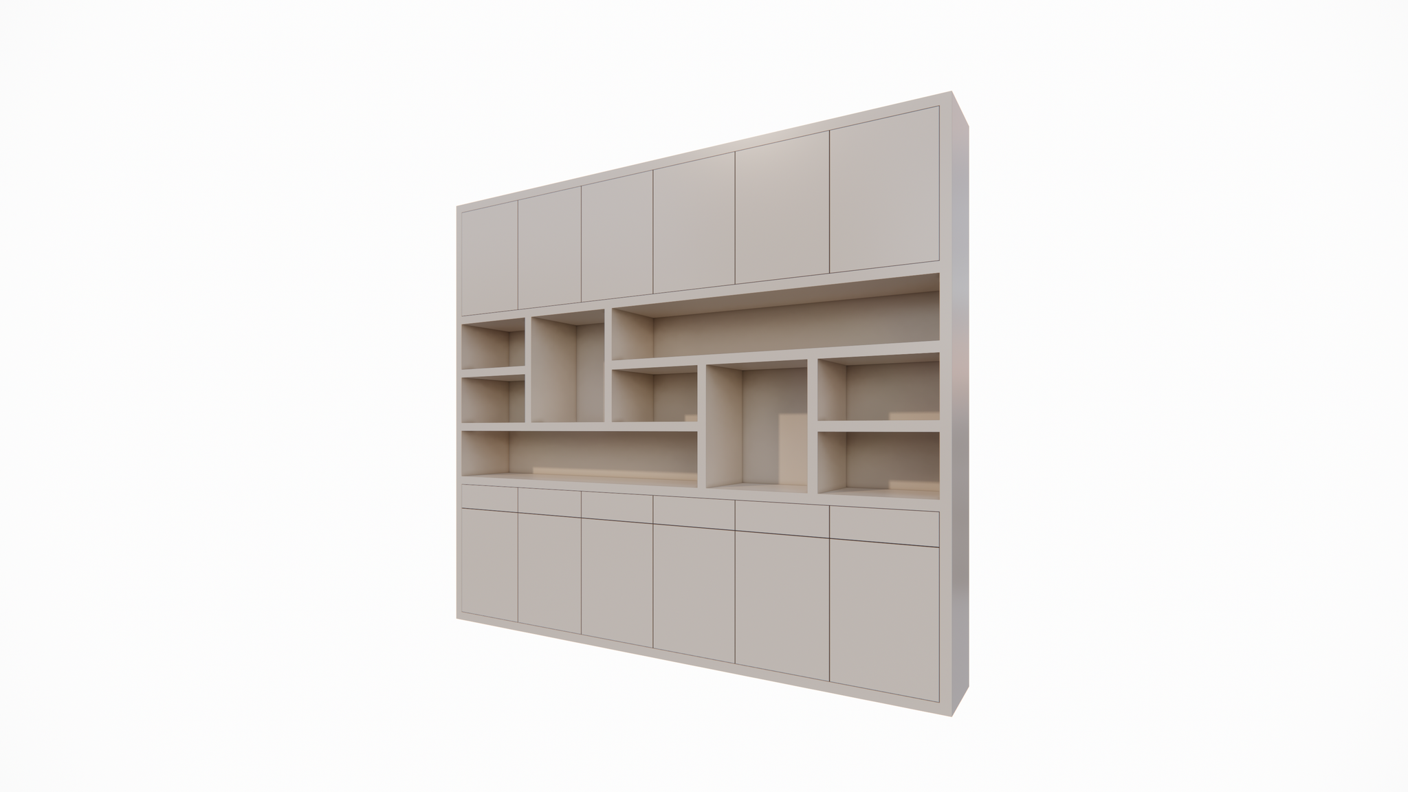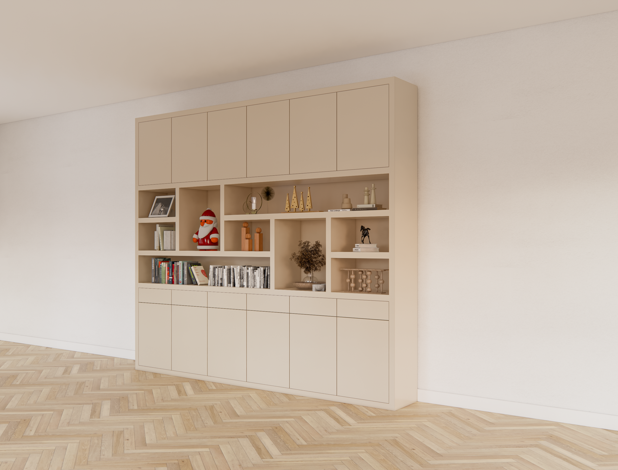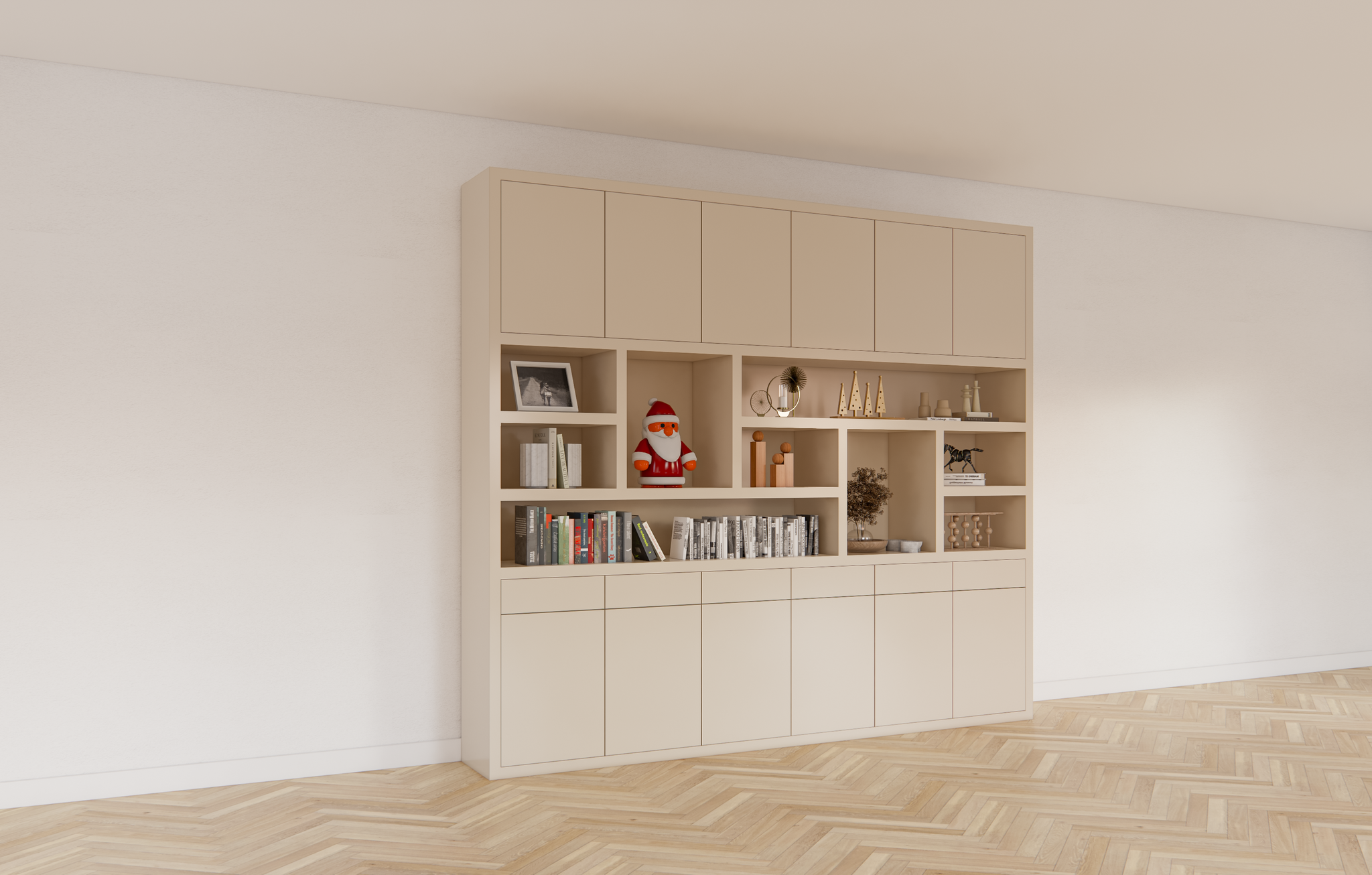 Regal Lanzarote 02 - 300x40x260H cm - Türen mit Push-to-Open-Funktion - Schubladen mit Push-to-Open-Funktion - schlichte Ausführung