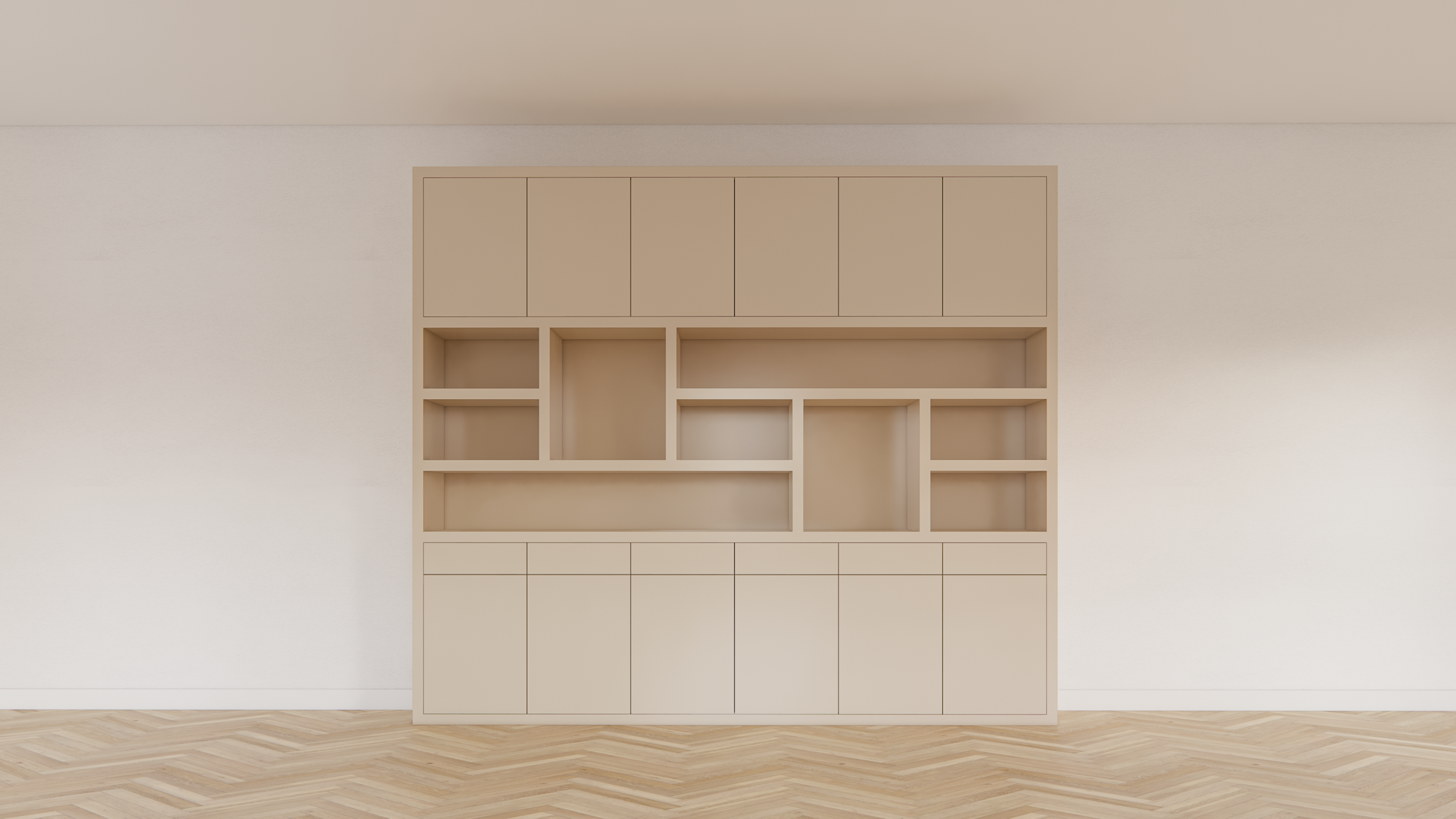 Was den Lanzarote 02 wirklich einzigartig macht, ist seine clevere Kombination aus geschlossenen Räumen und offenen Fächern. Die geschlossenen Fächer bieten einen diskreten Ort, um Gegenstände ordentlich und außer Sicht zu verstauen, während die offenen Fächer Platz bieten, um persönliche Gegenstände, Bücher oder Dekorationen stilvoll zu präsentieren. Diese Kombination aus Stauraum und offenen Elementen schafft ein schönes Gleichgewicht zwischen Funktionalität und Ästhetik und macht den Schrank nicht nur praktisch, sondern auch zu einem auffälligen Designelement in Ihrer Einrichtung.