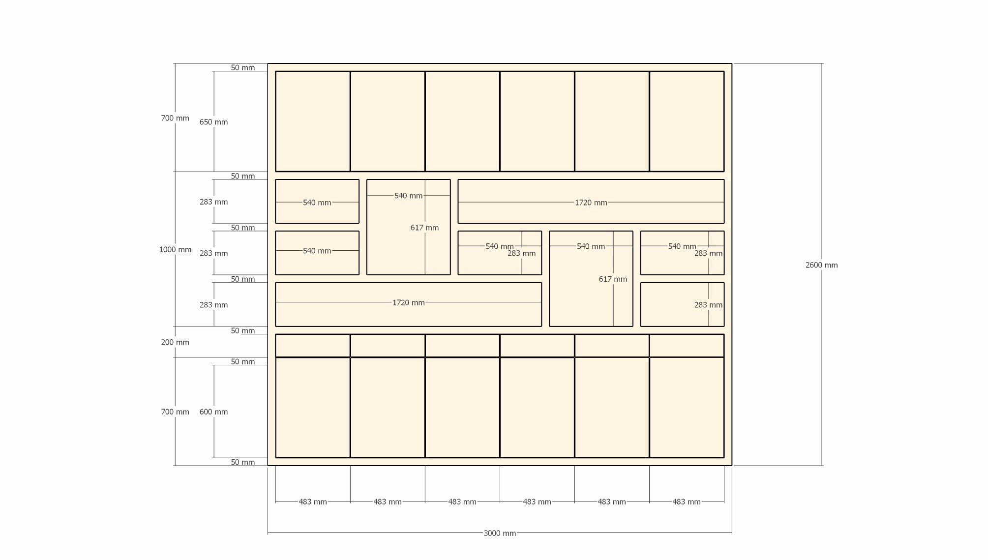 Der Schrank Lanzarote 02 mit Fächern ist die ideale Lösung für alle, die einen stilvollen und funktionalen Schrank mit einem modernen Look suchen. Mit seinen großzügigen Abmessungen von 300x40x260H cm bietet dieser Schrank nicht nur viel Stauraum, sondern auch einen eleganten, modernen Look, der sich mühelos in jede Einrichtung einfügt. Der Schrank verfügt über Push-to-Open-Türen und Push-to-Open-Schubladen, die ihm ein minimalistisches Aussehen ohne sichtbare Griffe verleihen, was für ein besonders elegantes Finish und eine benutzerfreundliche Erfahrung sorgt.