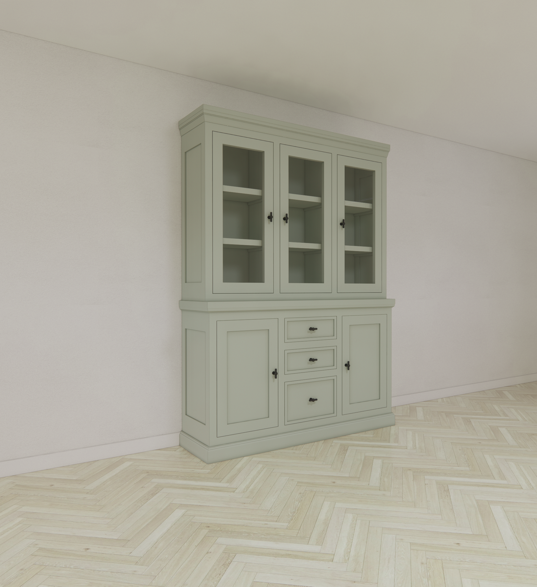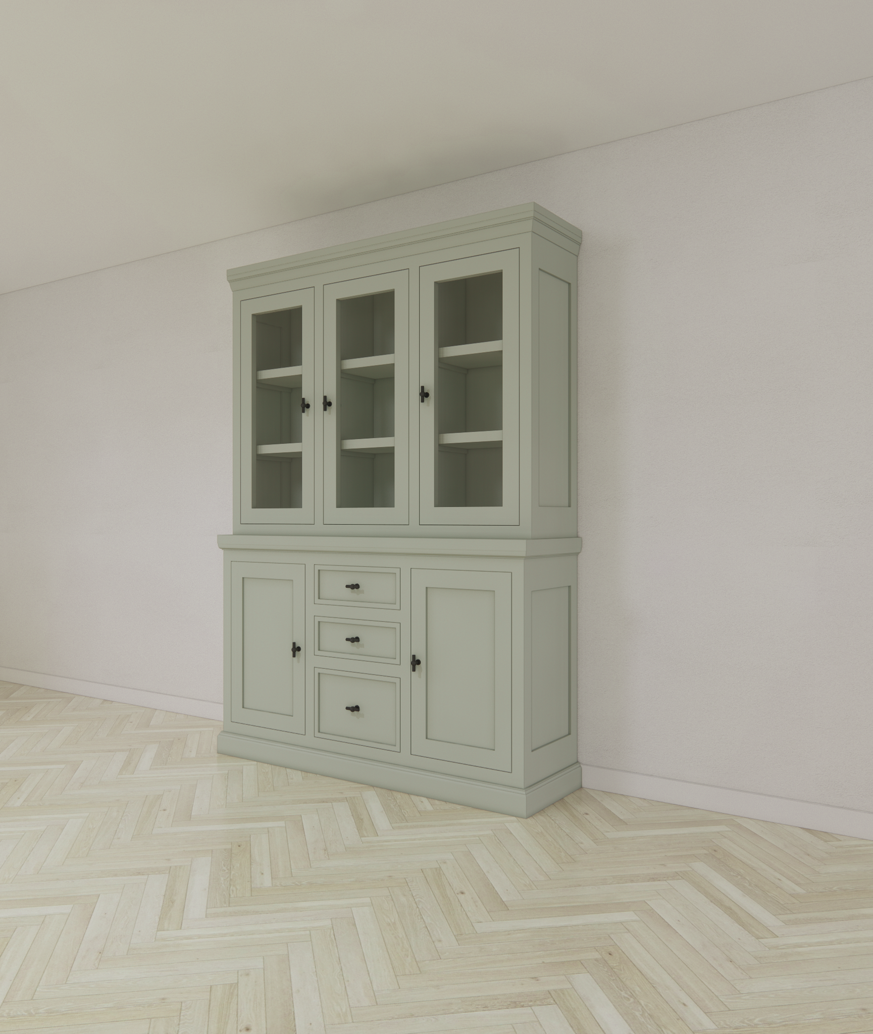 Buffetschrank Foggia 03: DER Schrank für Stil und Stauraum! Mit den Maßen 160x48x225H cm ist der Buffetschrank Foggia 03 ein absoluter Hingucker in jeder Einrichtung. Dieser Schrank ist nicht nur schön anzusehen, sondern auch superpraktisch. Drei Schranktüren ermöglichen es Ihnen, Ihre Lieblingsstücke zu präsentieren, während drei Schubladen mit Soft-Close-Funktion perfekt für die Aufbewahrung aller möglichen Dinge sind. Außerdem gibt es zwei geschlossene Türen, um Gegenstände außer Sichtweite zu halten. Die rustikalen/klassischen Verzierungen verleihen diesem eleganten Schrank einen Hauch von Charme und verleihen ihm einen zeitlosen Look. Das Beste von allem? Sie können den Foggia 03 Buffetschrank in jeder gewünschten RAL- und NCS-Farbe bestellen. Lassen Sie Ihrer Kreativität freien Lauf und wählen Sie die Farbe, die perfekt zu Ihrem Stil passt. Und wenn Sie noch speziellere Wünsche haben, bieten wir Ihnen maßgeschneiderte Lösungen an. Worauf warten Sie also noch? Werten Sie Ihre Einrichtung mit dem Foggia 03 Buffetschrank auf und verleihen Sie Ihrem Zuhause einen Hauch von Stil und Stauraum, den Sie lieben werden!