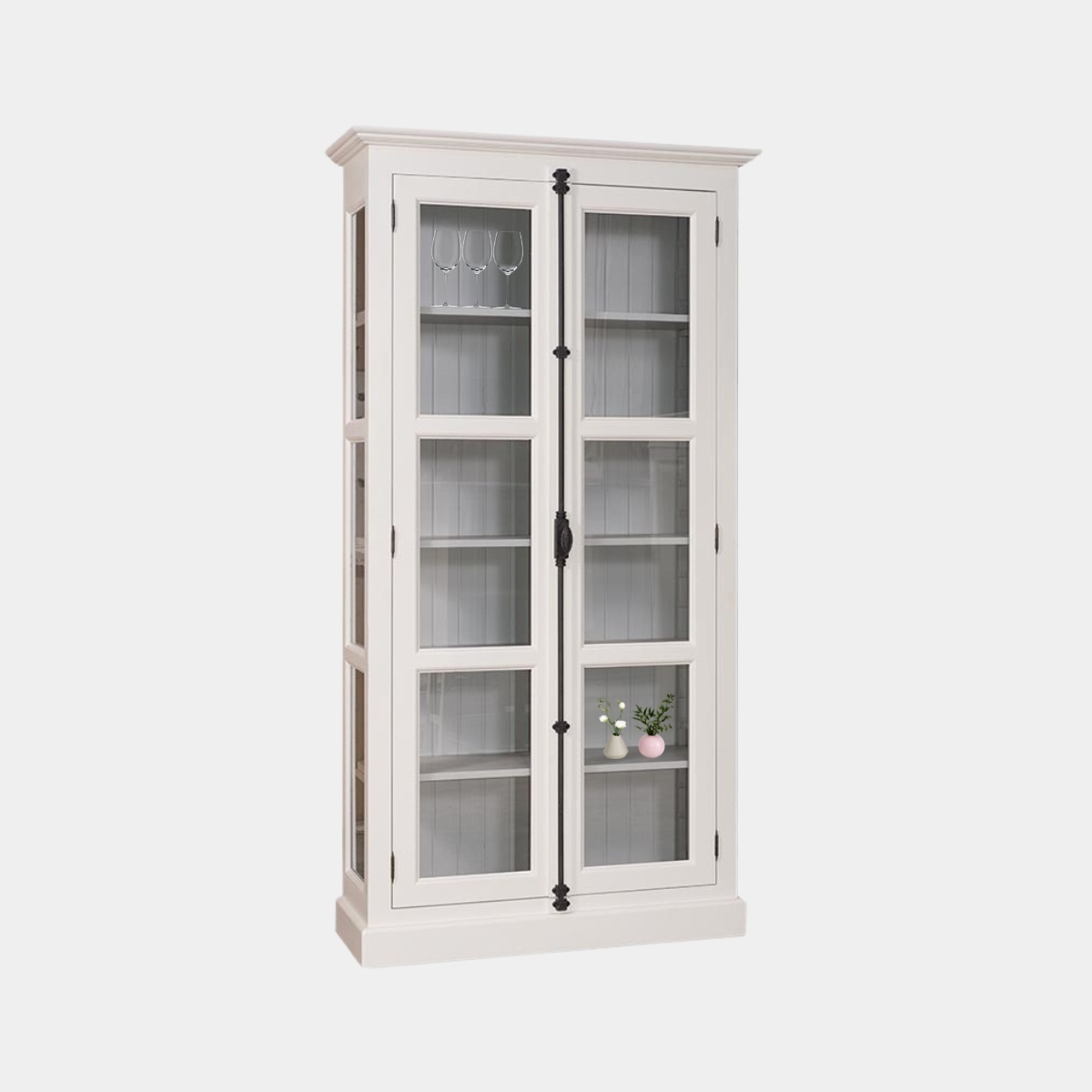 Vervollständigen Sie Ihren Raum mit der klassischen Bilbao Vitrine und lassen Sie Ihre wertvollen Sammlungen in dieser atemberaubenden Glasvitrine erstrahlen. Die Bilbao Vitrine hat Glasseiten, so dass Ihre wertvollen Sammlungen oder Dekorationsgegenstände aus jedem Winkel bewundert werden können. Das Ganzglasdesign bietet ein transparentes und offenes Gefühl und lässt Ihren Raum hell und geräumig erscheinen. Ideal für die Präsentation Ihres schönsten Geschirrs, von Kunstobjekten, Souvenirs oder anderen wertvollen Gegenständen. Das Besondere an dieser Vitrine ist der Spanolet-Verschluss, der nicht nur für einen sicheren Verschluss sorgt, sondern auch dem Design Charme verleiht. Er macht das Öffnen und Schließen der Vitrine einfach und sorgt dafür, dass Ihre Gegenstände sicher aufbewahrt werden.