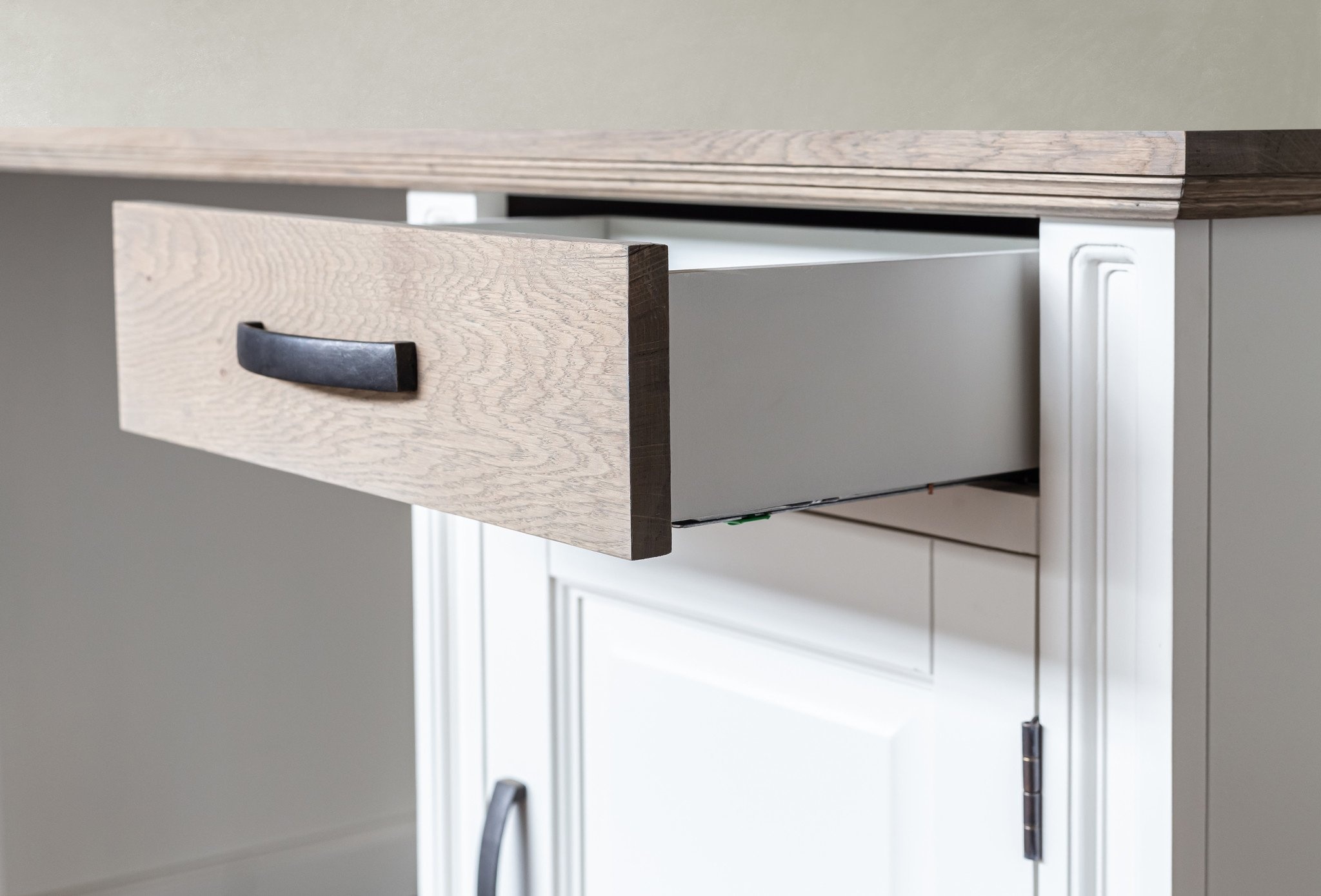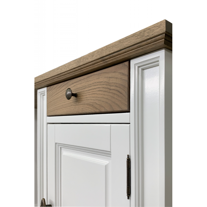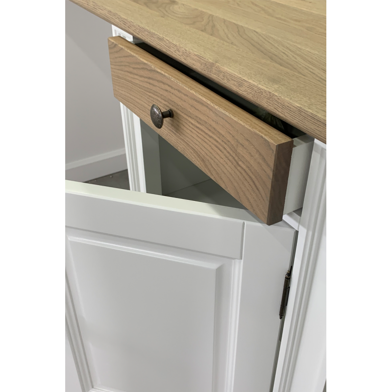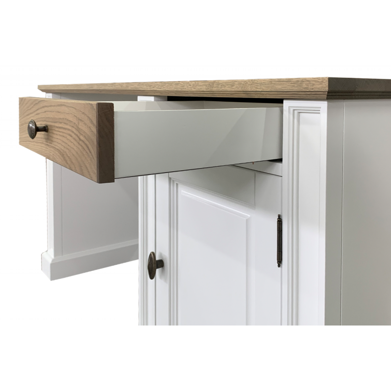 Auf dem Schreibtisch Emma 06 wird das Arbeiten zum Vergnügen. Die Platte kombiniert sich perfekt mit den stilvollen Griffen. Dieser Schreibtisch im Landhausstil ist mit einer Eichenplatte kombiniert und hat 1 Tür und 1 Schublade. Der Schreibtisch ist in allen RAL-Farben erhältlich. Der Schreibtisch Emma 06 ist in allen RAL-Farben erhältlich. Entscheiden Sie sich für dieses Prunkstück in Ihrer Einrichtung!