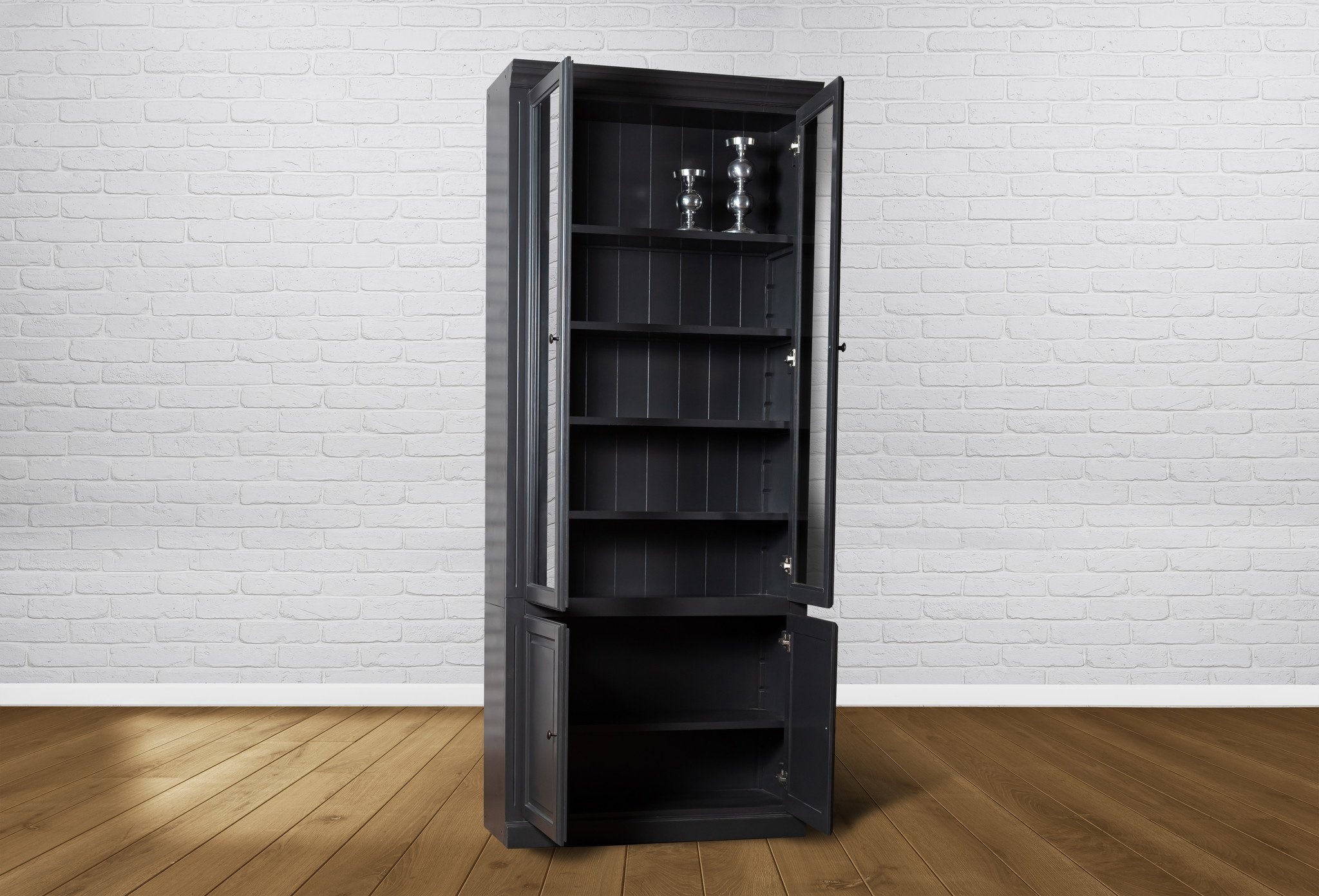 123schrank Vitrine/Schaltschrank LM 01 - 100x40x245H cm - 2 Vitrinentüren - 5 Fachböden - 2 geschlossene Flügeltüren - verstellbare Fachböden - schaltbar
