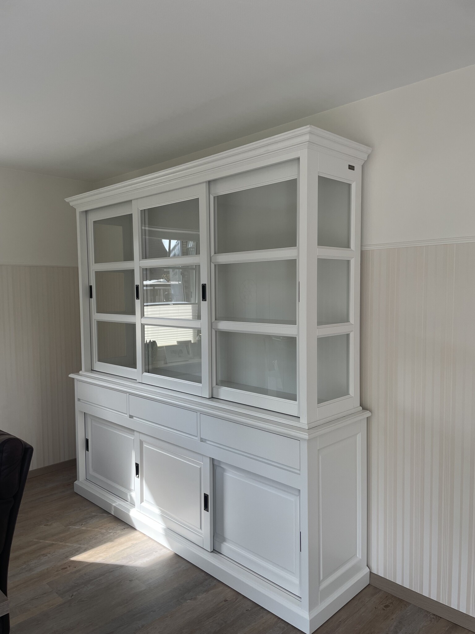 Der Buffetschrank Washington 220cm hat eine schöne schlichte Oberfläche, aber auch einen stimmungsvollen Look. In diesem Sideboard können Sie viel verstauen und die Schubladen laufen mit einem Soft-Close-System. Der Schrank hat spezielle Seitenwände aus Glas, durch die viel Licht einfällt. Präsentieren Sie Ihr Geschirr und Ihre Gegenstände auf eine schöne Art und Weise. Der Buffetschrank Washington 220cm kann in allen RAL-Farben bestellt werden.