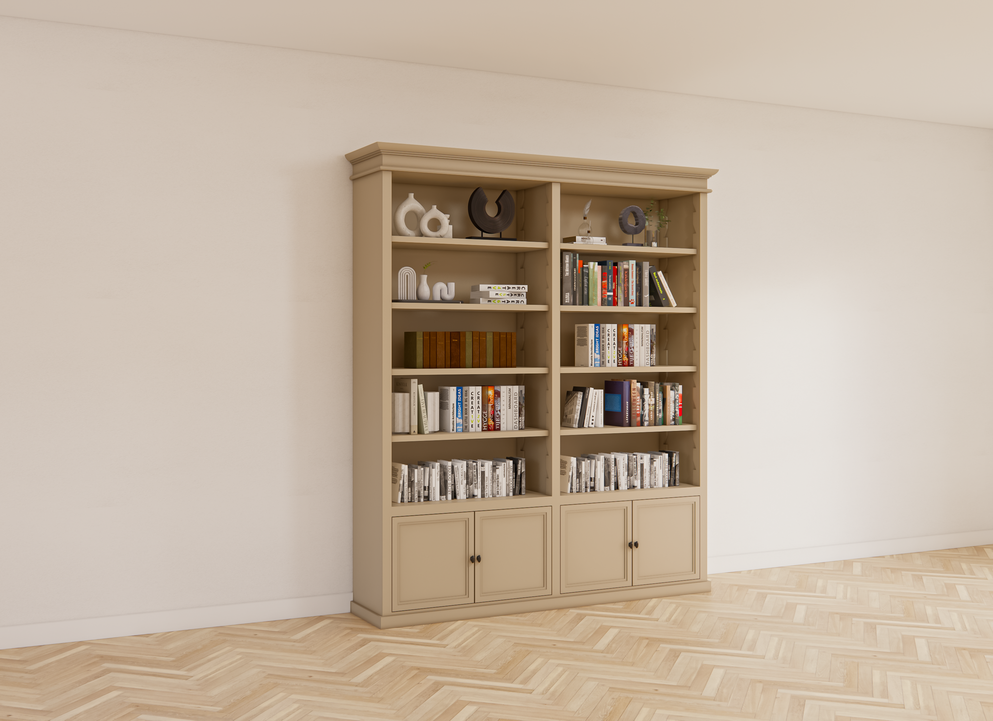 Außerdem bieten wir für die Bristol Library individuelle Anpassungsmöglichkeiten an. Das bedeutet, dass die Abmessungen, das Layout, die Oberfläche und sogar die Türen vollständig an Ihre speziellen Bedürfnisse angepasst werden können. Ob Sie einen größeren Schrank benötigen, eine andere Regalaufteilung wünschen oder bestimmte Materialien oder Ausführungen im Sinn haben - alles ist möglich.