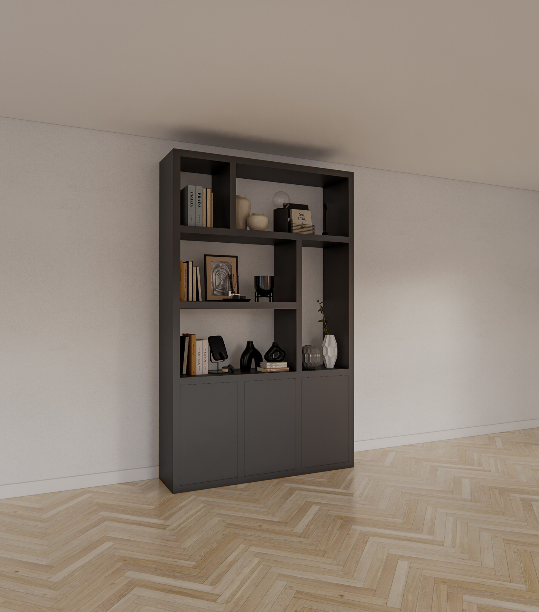 >Der Bergen Compartment Cabinet/Room Divider lässt sich ganz individuell an Ihre Bedürfnisse und die spezifischen Maße Ihres Raumes anpassen. Außerdem kann der Schrank in jeder RAL- oder NCS-Farbe lackiert werden, so dass er perfekt zu Ihrer Einrichtung passt.