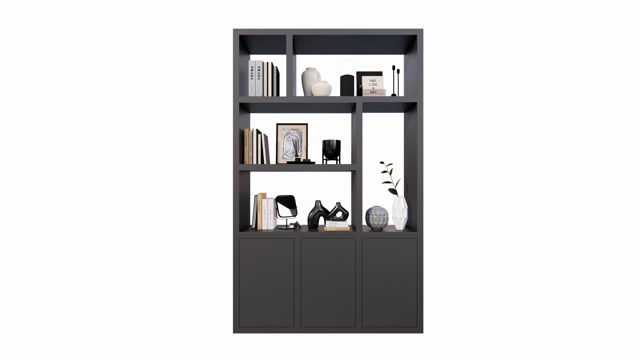 >Dieser Schrank ist ideal für eine Vielzahl von Anwendungen, sowohl zu Hause als auch im Büro. Verwenden Sie ihn als Raumteiler, um einen Raum auf stilvolle und praktische Weise aufzuteilen, oder stellen Sie ihn an eine Wand, um die Farbe der dahinter liegenden Wand dezent durchscheinen zu lassen. Dank der offenen Rückwand bleibt der Raum hell und großzügig.