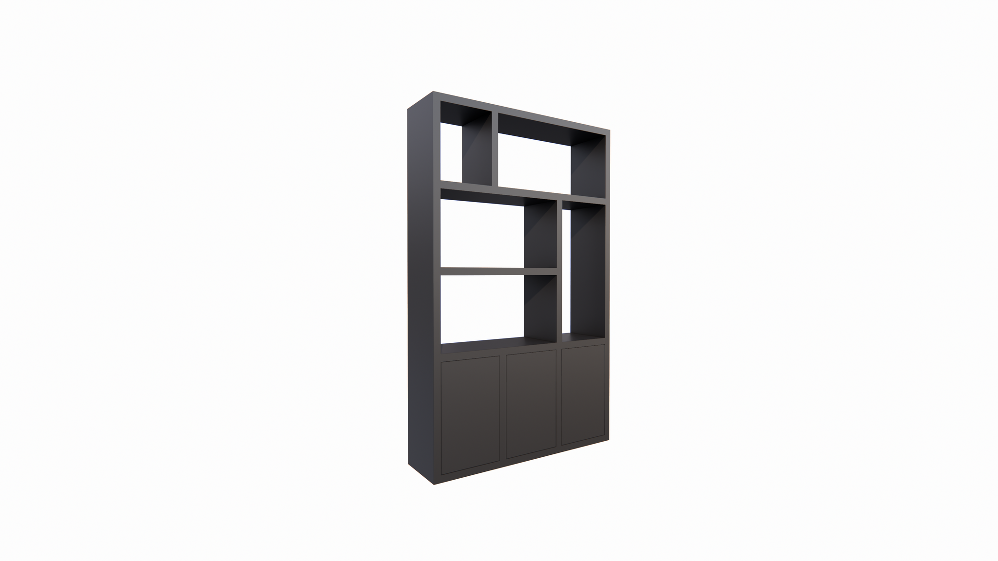 Abteilungs-/Raumteiler Bergen - 150x40x240H cm - 5cm Fachbodenstärke - 3 push-to-open Türen - offene Rückwand