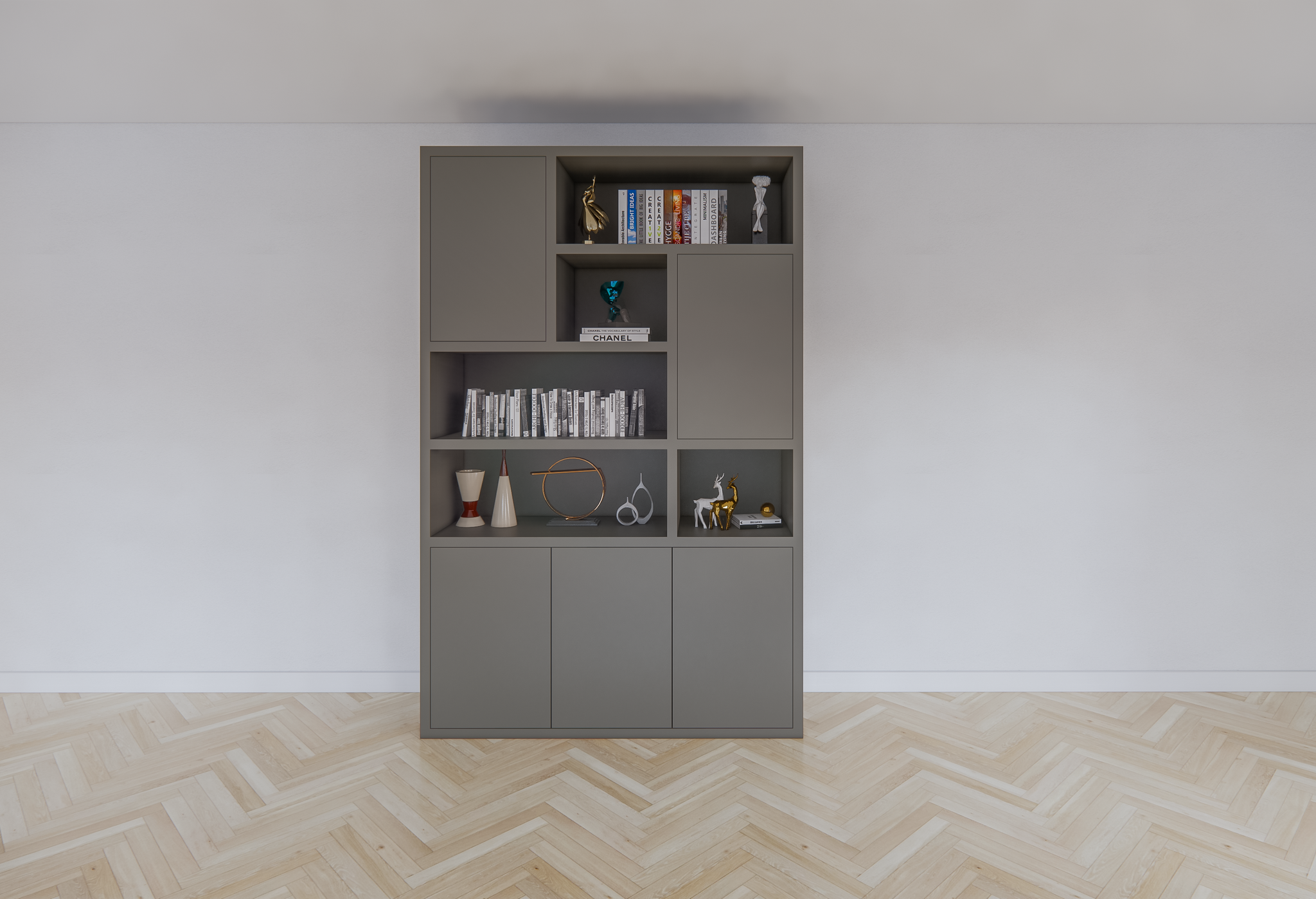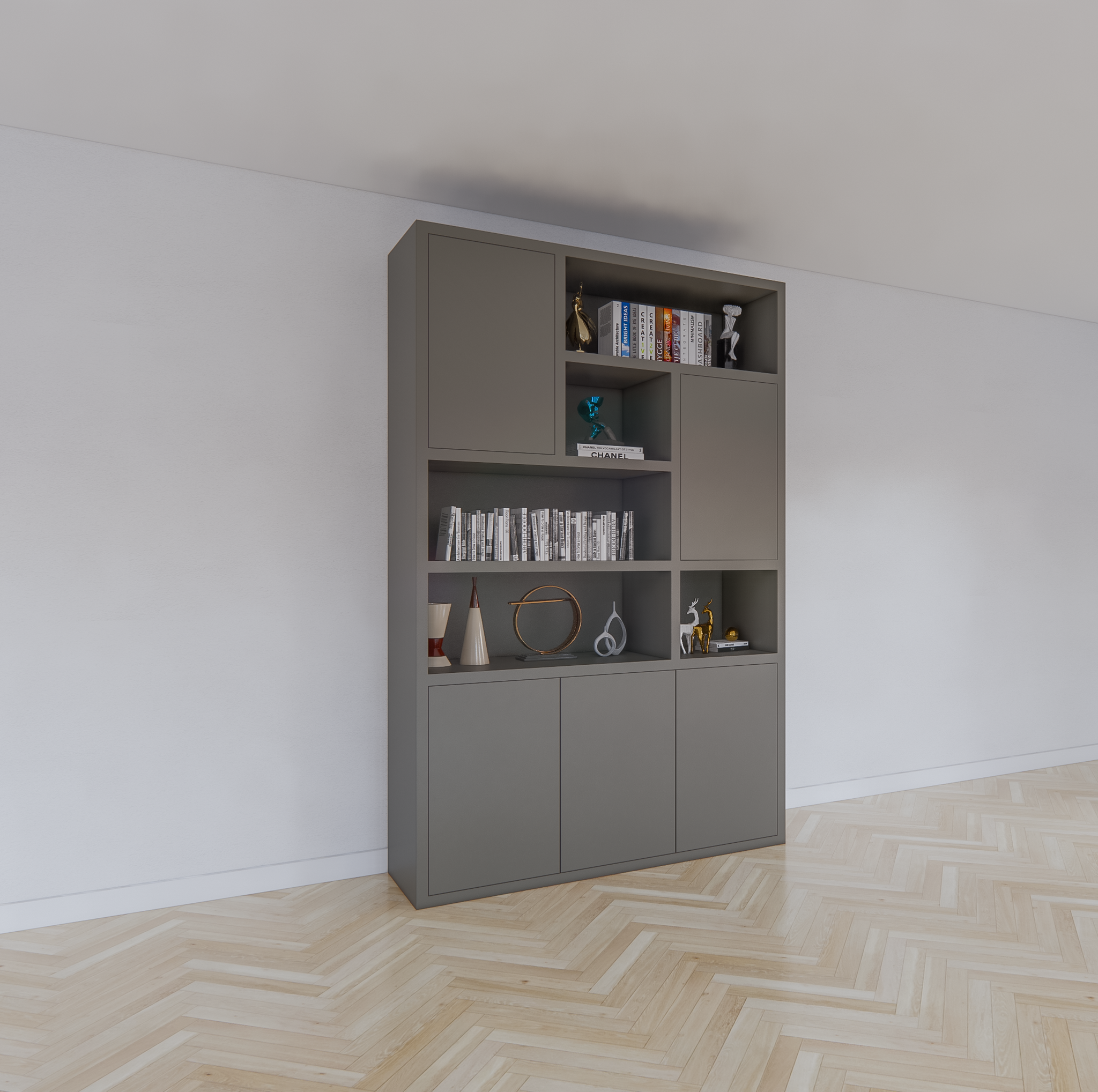 >Der Schrank verfügt über 5 Push-to-Open-Türen, die einen modernen, schlanken Look ohne sichtbare Griffe bieten. Darüber hinaus gibt es 5 offene Fächer, in denen Sie Ihre schönsten Dekorationsartikel, Bücher oder Pflanzen ausstellen können. Diese spielerische Kombination aus offenen und geschlossenen Fächern sorgt für ein dynamisches und attraktives Design.