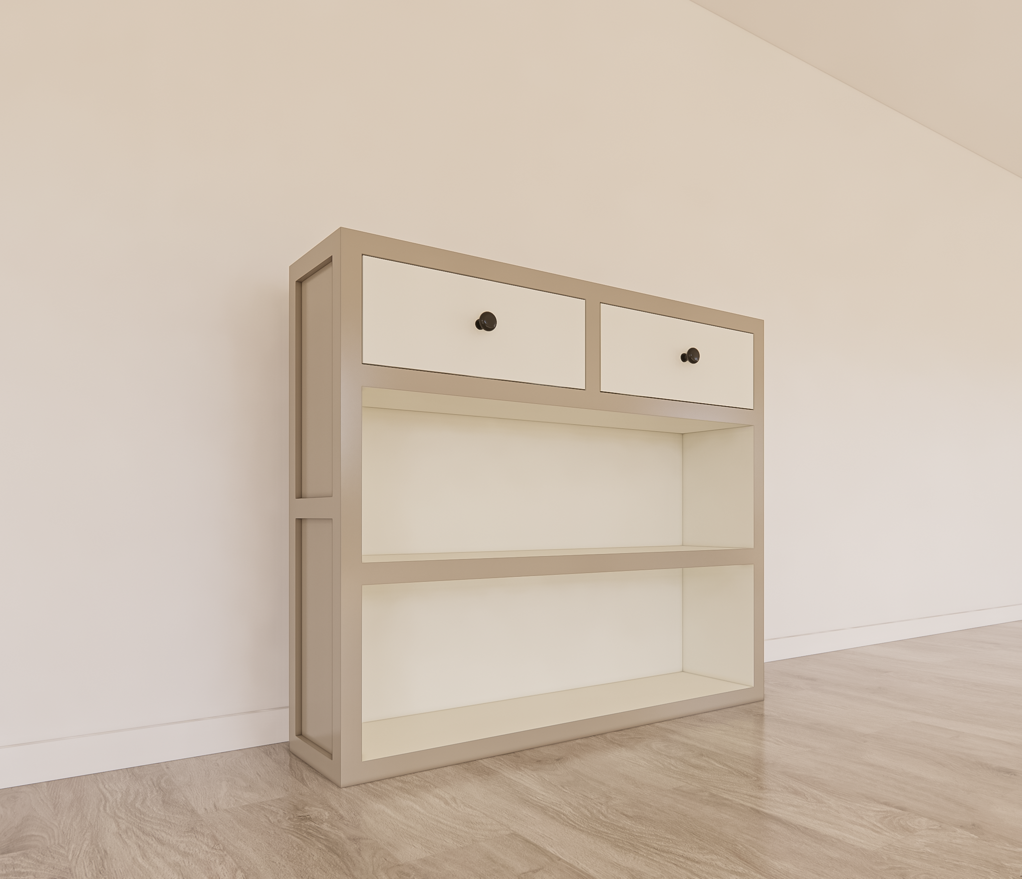 Das Tone Sofa Split ist ein stilvoller und praktischer Schrank, der sowohl in Laden- als auch in moderne Innenräume passt. Dank der Kombination aus zwei geräumigen Soft-Close-Schubladen und offenen Fächern haben Sie nicht nur viel Stauraum, sondern auch einen schönen Platz, um Ihre Lieblingsartikel oder Produkte zu präsentieren.