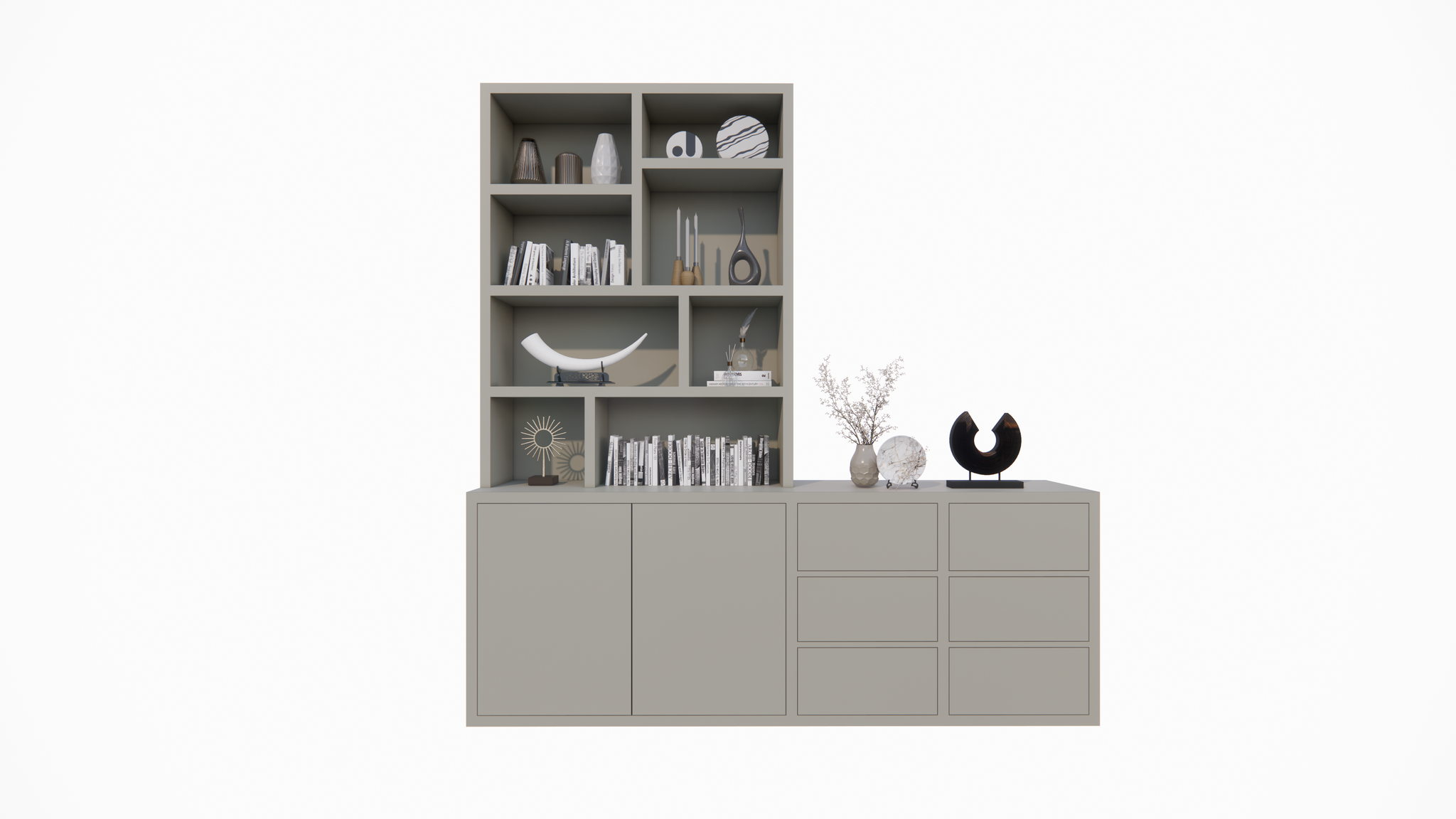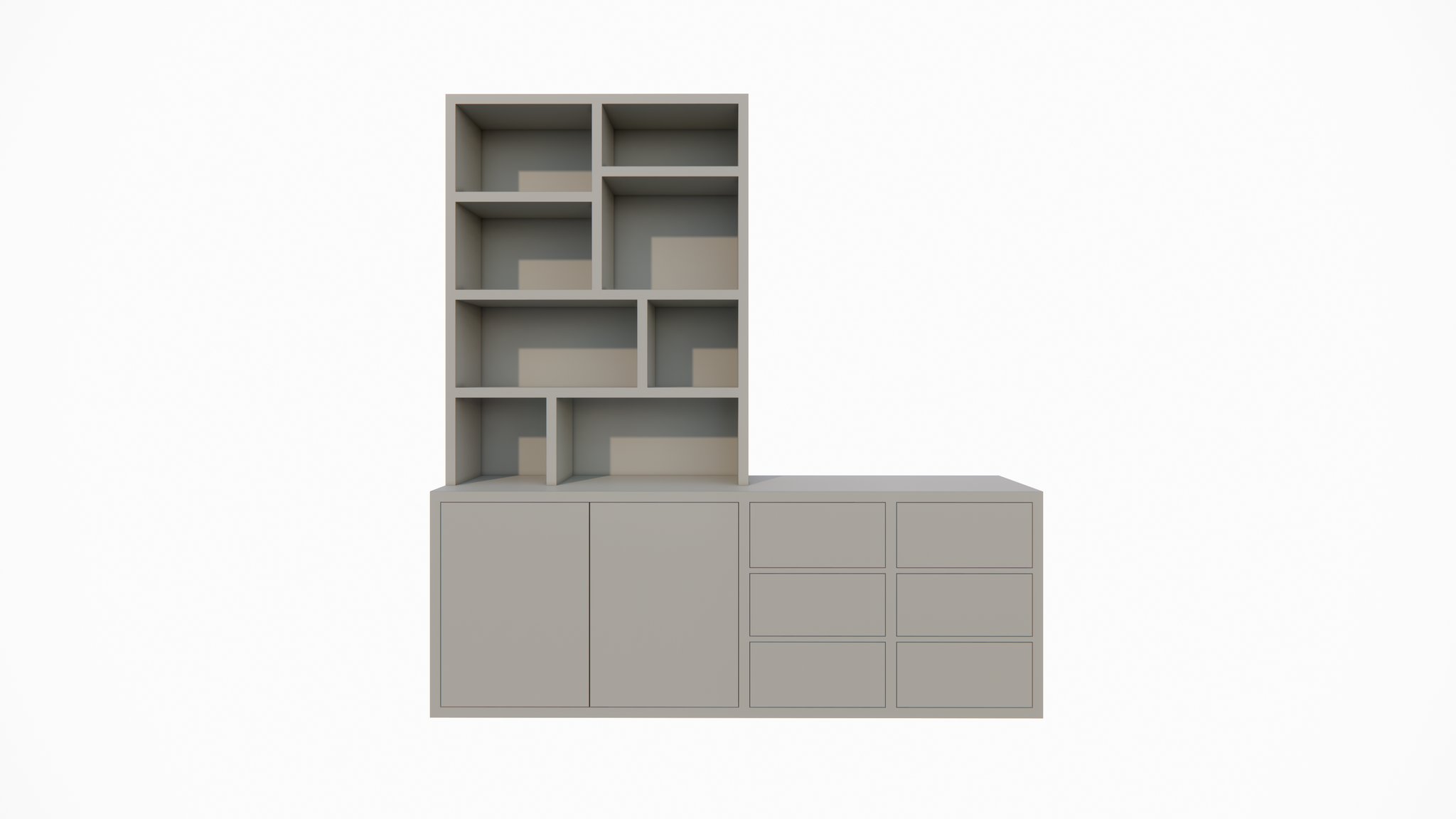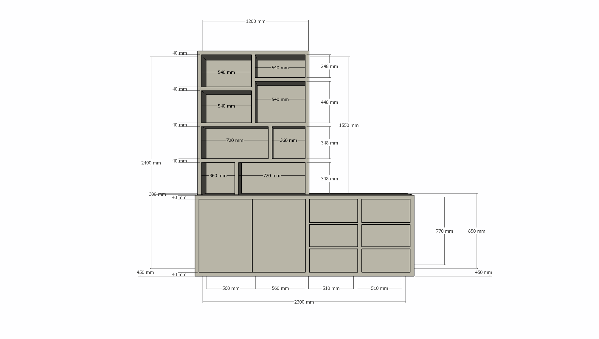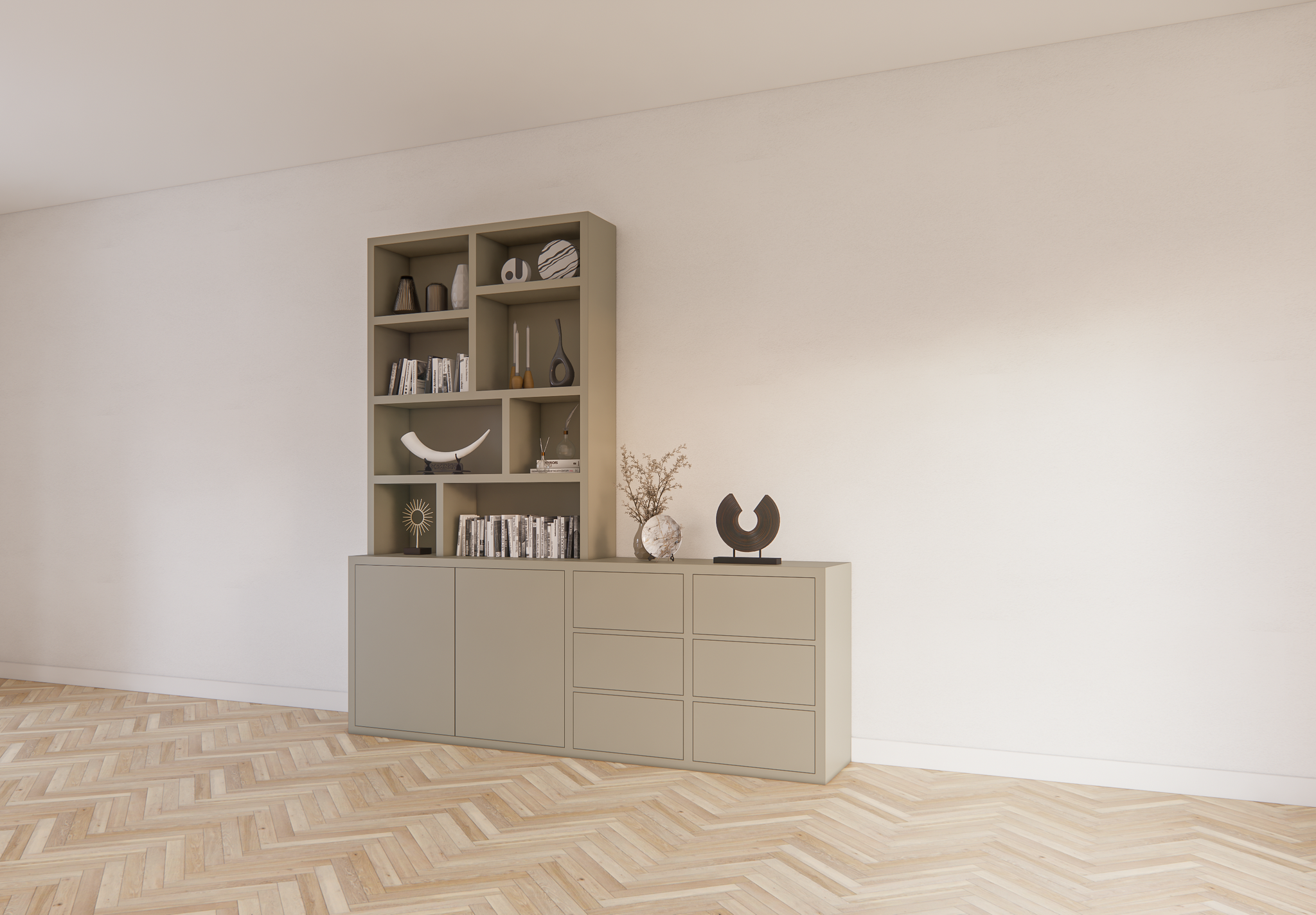 Albi Anrichte/Schrank - 230x30/45x240H cm - Schubladen und Türen mit Push-to-Open - 4cm Bodenstärke