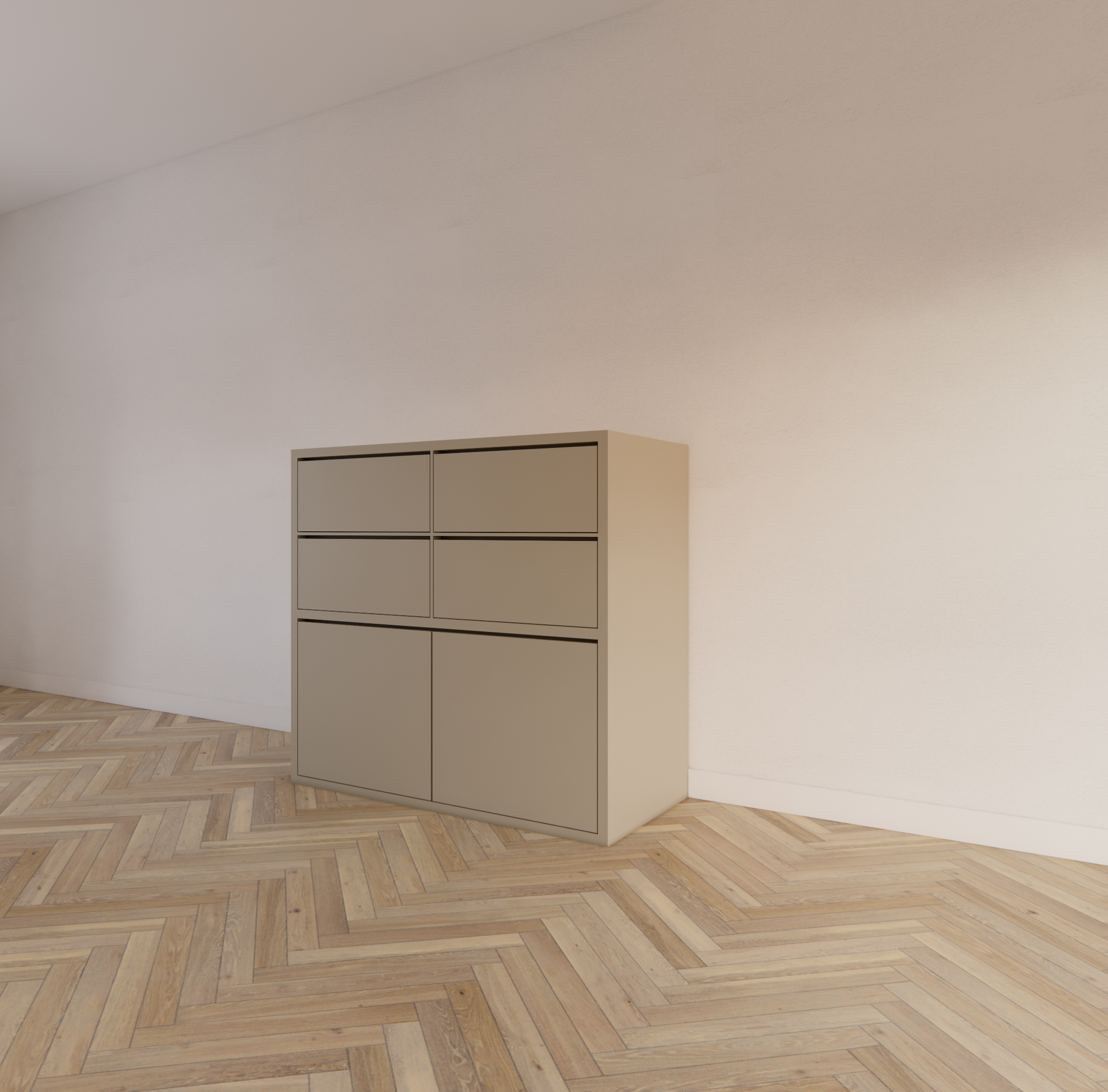 Wie alle unsere Möbel ist auch die Kommode Izmir in einer Vielzahl von Farben und Oberflächen erhältlich, einschließlich RAL- und NCS-Farben, so dass Sie sie Ihrem persönlichen Geschmack und dem Stil Ihrer Einrichtung anpassen können. Außerdem ist eine individuelle Anpassung möglich, so dass Sie den Schrank an Ihre speziellen Bedürfnisse anpassen können, wie z.B. zusätzliche Schubladen, andere Größen oder eine andere Aufteilung.