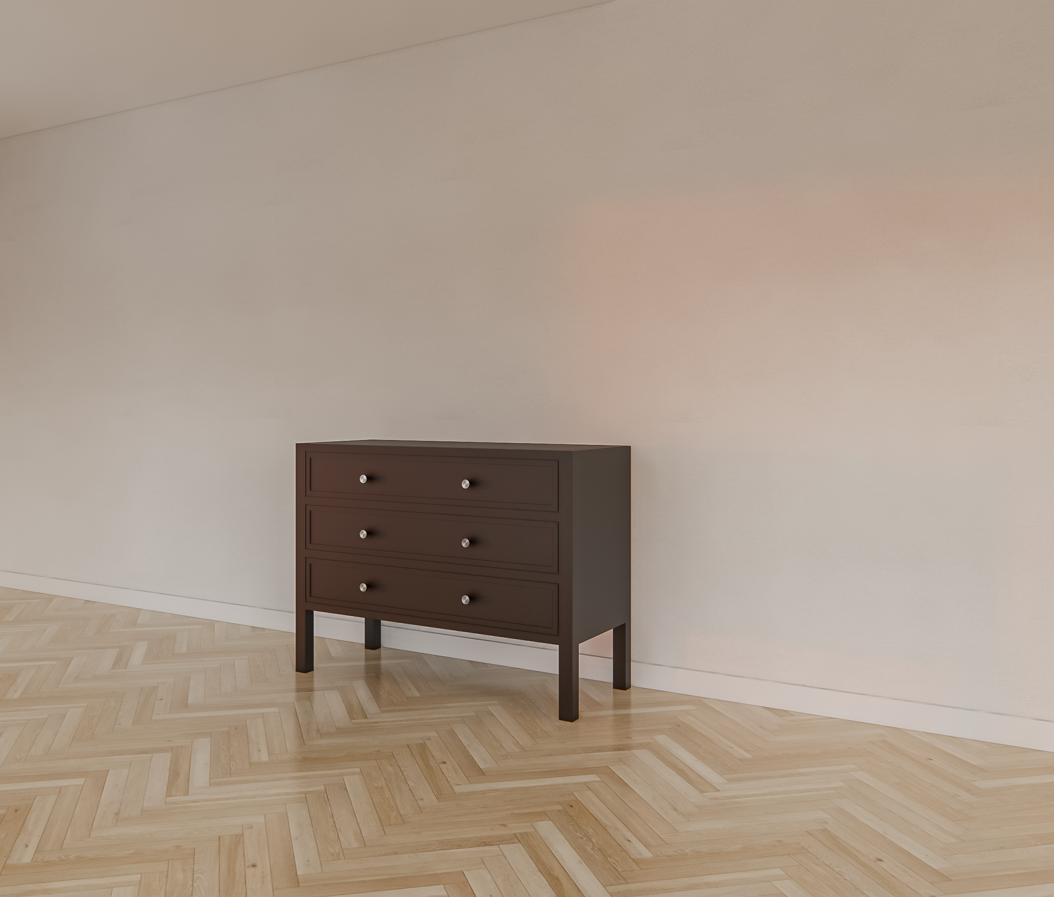 Diese stilvolle Kommode/Kleiderschrank kombiniert Funktionalität mit einem schlanken und modernen Design. Mit den Maßen 120x50x90H cm bietet dieses Möbelstück dank seiner drei geräumigen Soft-Close-Schubladen reichlich Stauraum. Die Soft-Close-Funktion sorgt für ein leises und sanftes Schließen der Schubladen und trägt so zur Benutzerfreundlichkeit und Langlebigkeit des Möbels bei.
