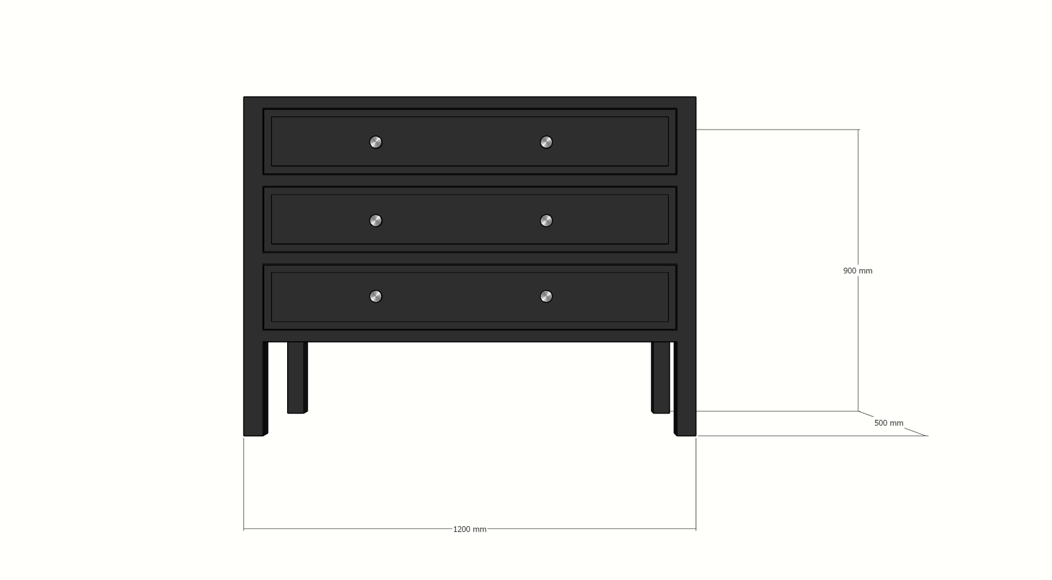 123schrank Kommode/Kommode - 120x50x90H cm - 3 Soft-Close-Schubladen - auf Beinen
