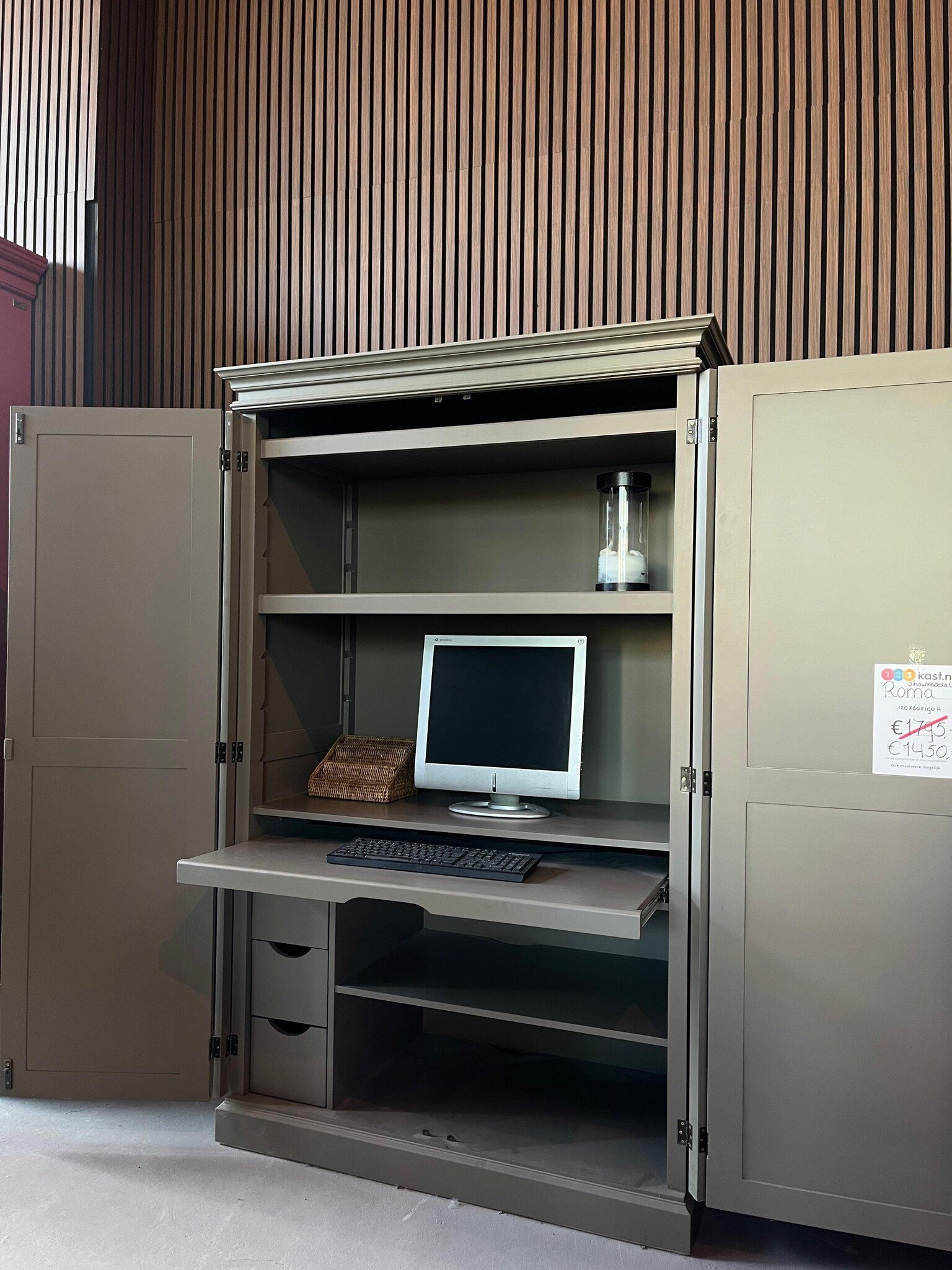 Dieser Computerschrank ist auch neu in anderen Farben und Größen erhältlich. Darüber hinaus bieten wir Ihnen die Möglichkeit, den Schrank ganz nach Ihren Wünschen anzufertigen. Schauen Sie sich hier unseren neuen Roma Computerschrank mit allen Varianten und Optionen an.