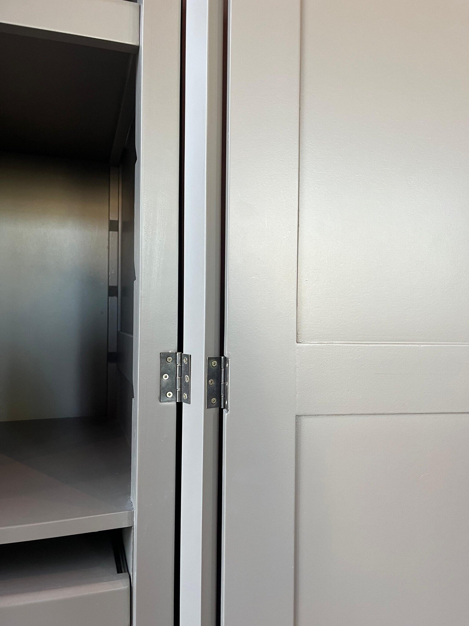 Der Schrank verfügt über hübsche Flügeltüren, die sich komplett flach an den Seiten öffnen. Das bedeutet, dass der Schrank bei geöffneten Türen kaum zusätzlichen Platz einnimmt - ideal für den praktischen Einsatz in kleinen und großen Räumen. Im Inneren befinden sich mehrere Einlegeböden und Fächer, die sich perfekt für die Aufbewahrung von Büromaterial, Büchern oder Zubehör eignen.