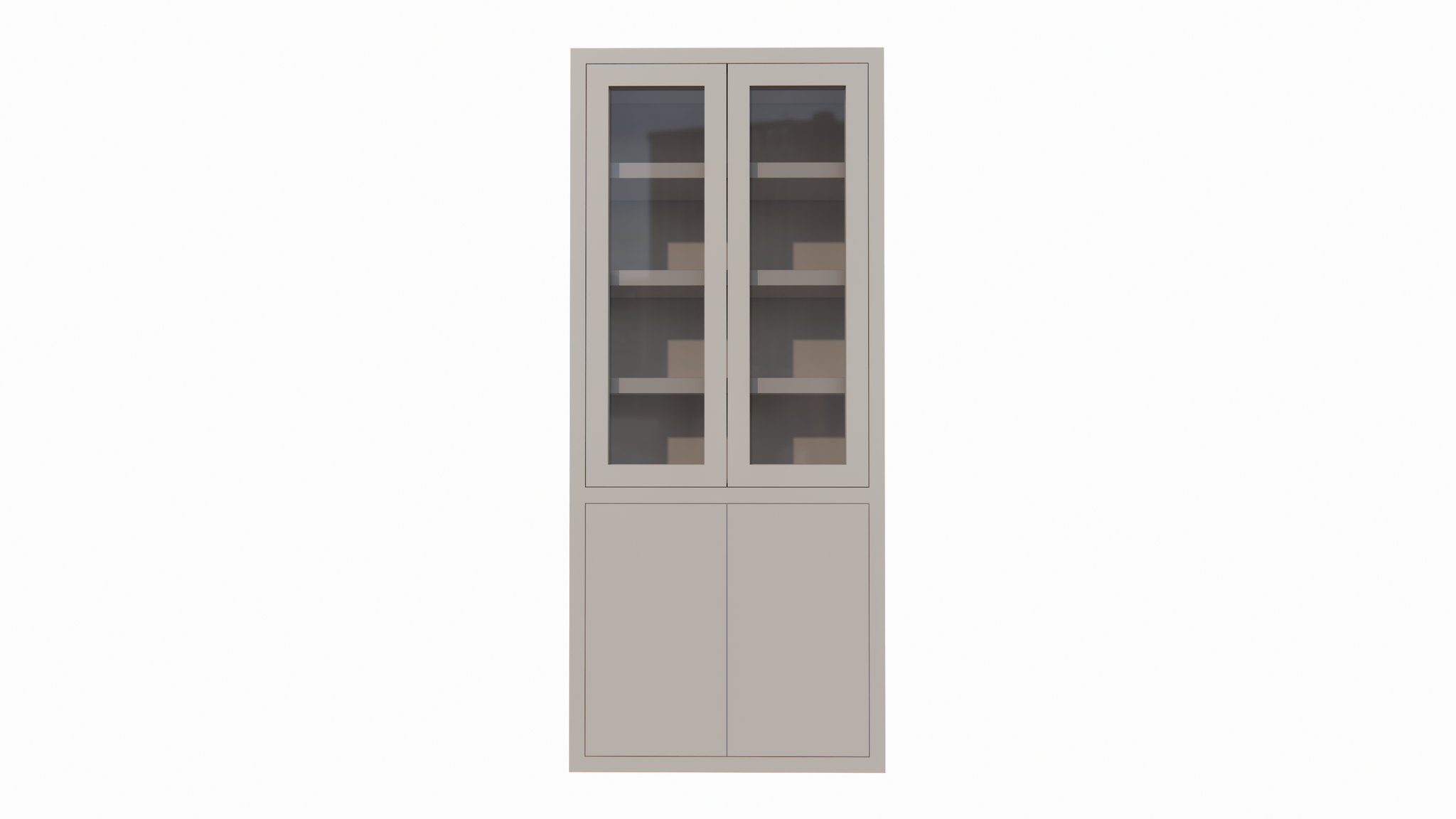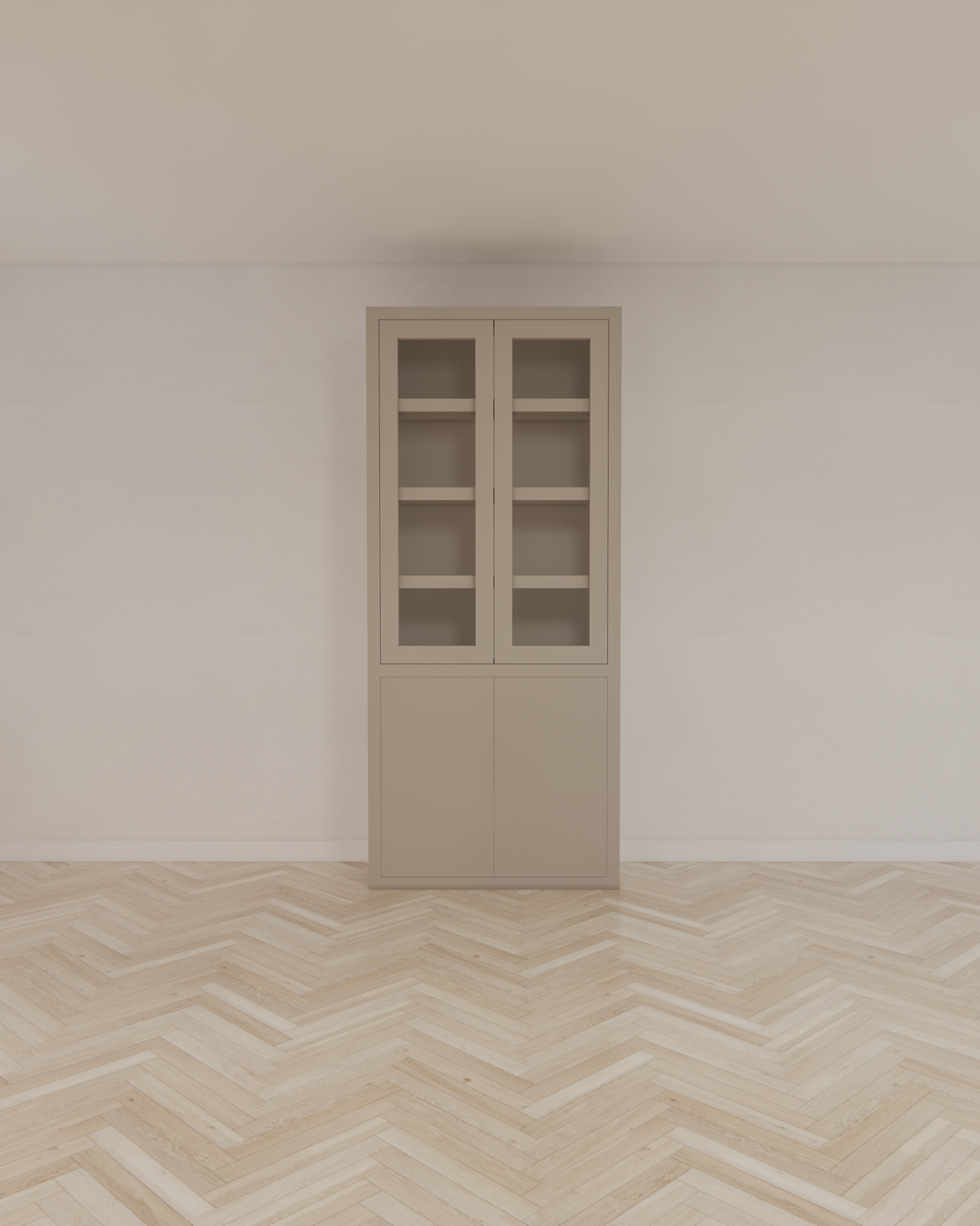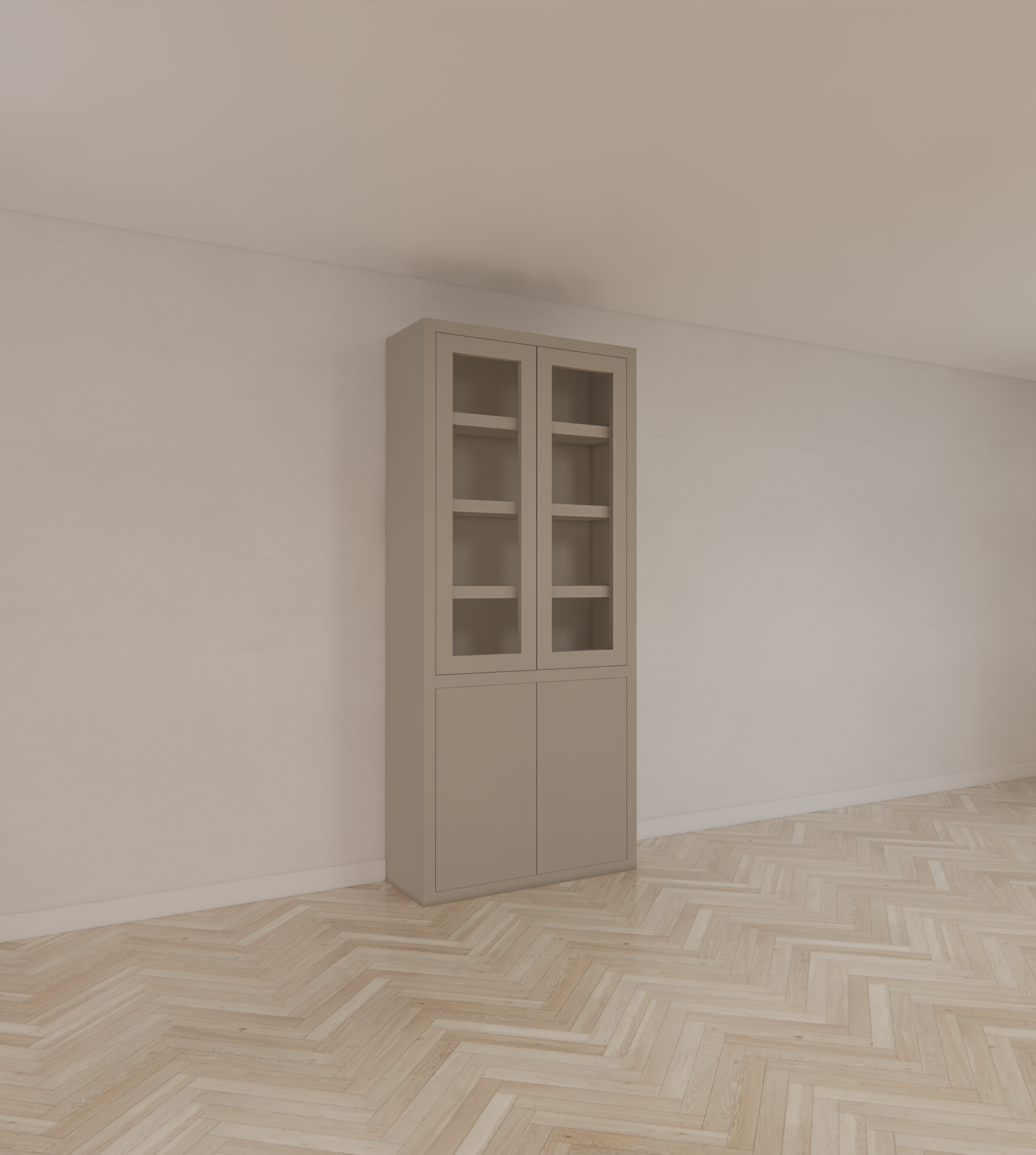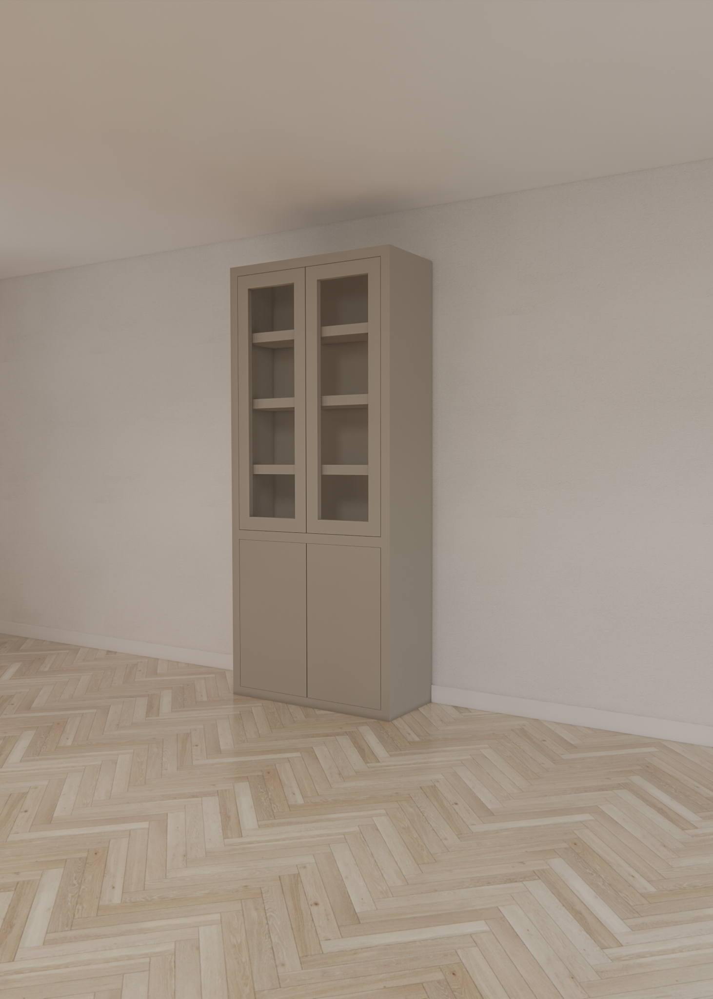 Vitrine Latina - 100x42x230H cm - 2 grifflose Schranktüren - 2 grifflose Volltüren - schlankes Design - feste Einlegeböden