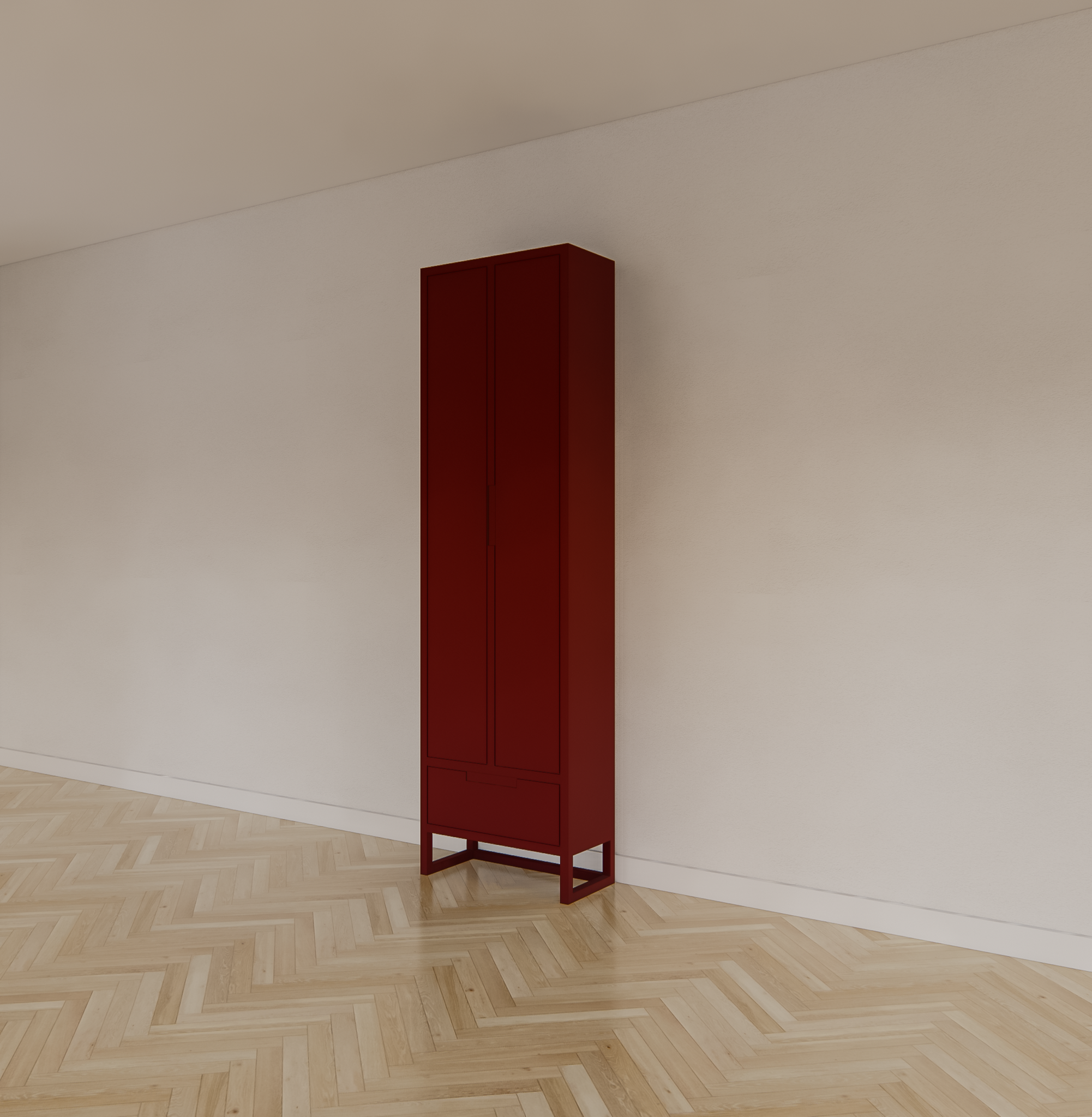 Der Cupboard Bandon ist ein eleganter und vielseitiger Schrank, der sich mühelos in einer Vielzahl von Räumen einsetzen lässt. Mit seinem schlanken und hohen Design bietet dieser Schrank viel Stauraum, ohne viel Bodenfläche zu beanspruchen, was ihn perfekt für enge Räume wie Flure, Schlafzimmer oder sogar eine stilvolle Ergänzung für Ihr Wohnzimmer macht. Die stabilen Beine des Schranks verleihen ihm ein luftiges, modernes Aussehen, während die Schublade mit Soft-Close-Funktion für Benutzerfreundlichkeit und ein luxuriöses Finish sorgt.