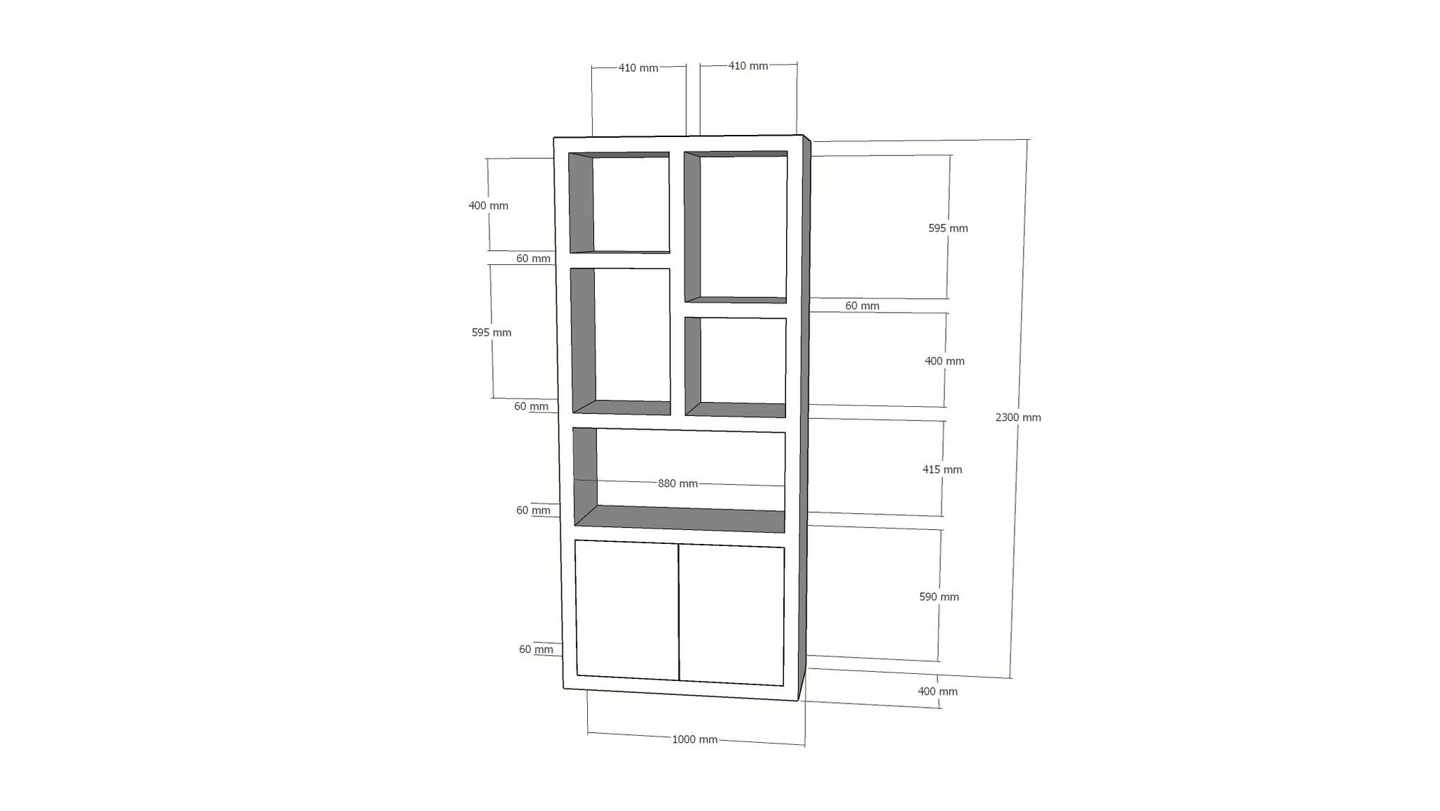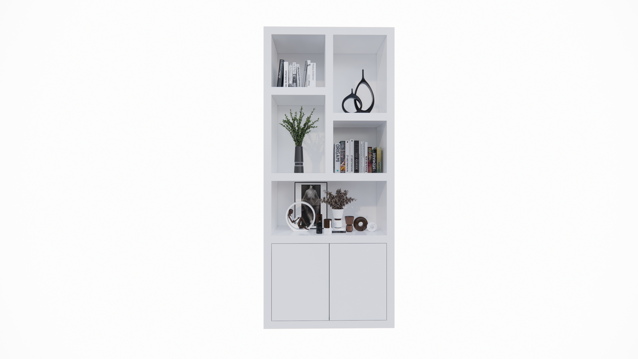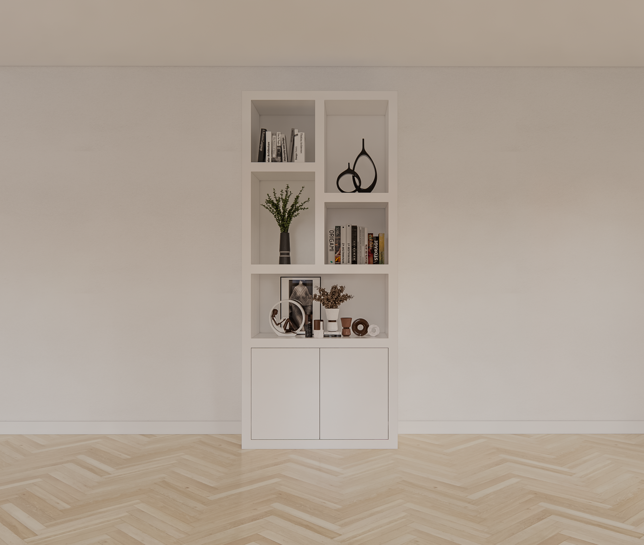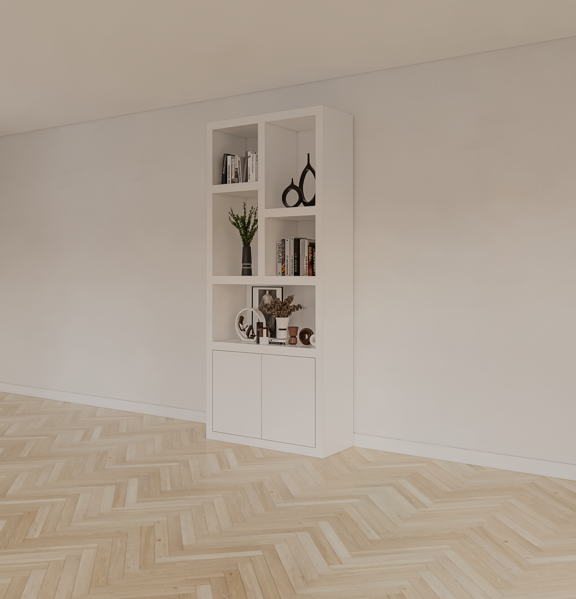 Der Schrank verfügt über 5 offene Fächer, die sich ideal für die Präsentation von Büchern, Dekorationsartikeln oder anderen persönlichen Gegenständen eignen. Darüber hinaus verfügt der Schrank über 2 offene Türen, die es Ihnen ermöglichen, Gegenstände ordentlich aufzubewahren und sie dennoch leicht zugänglich zu halten.