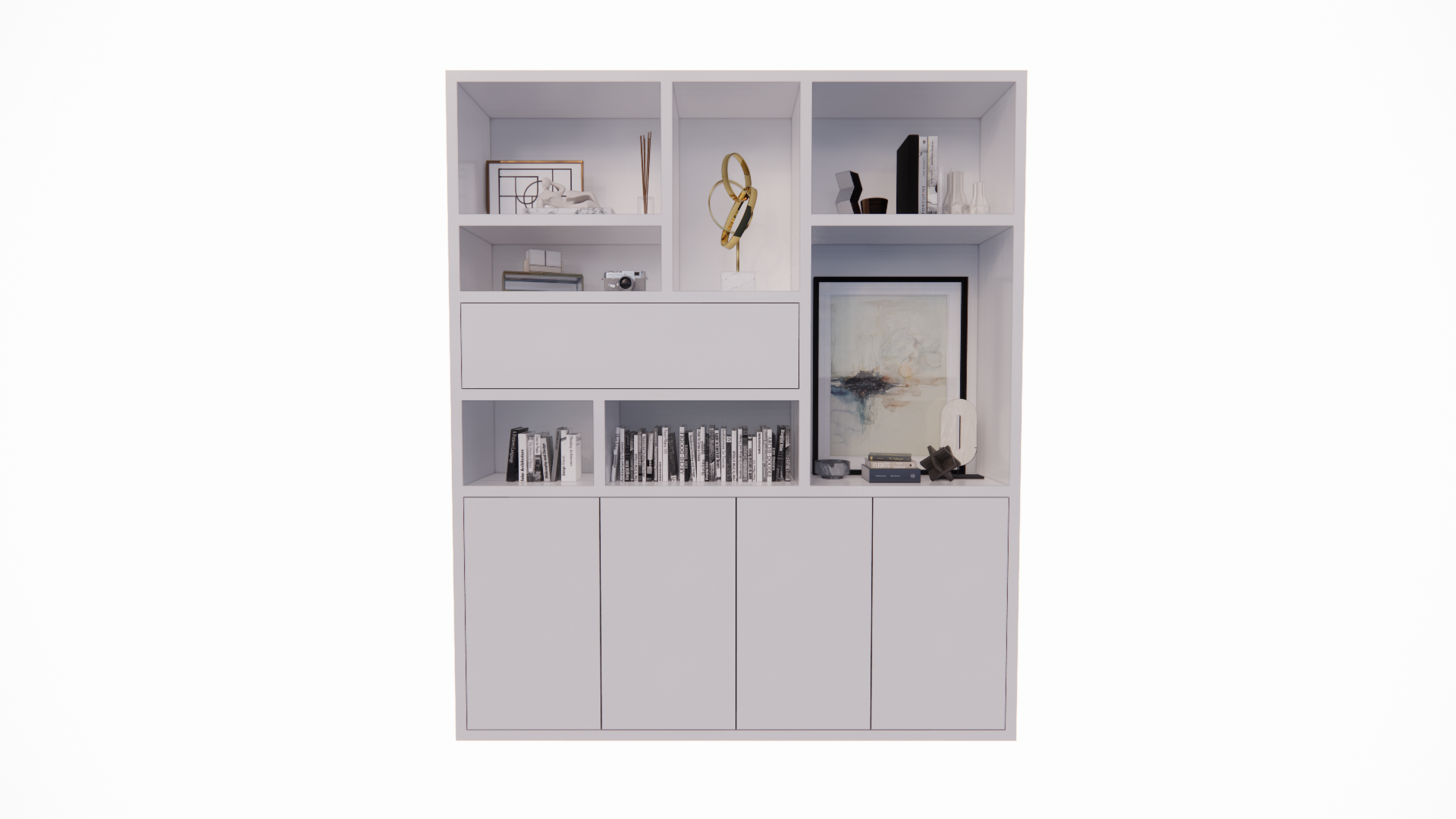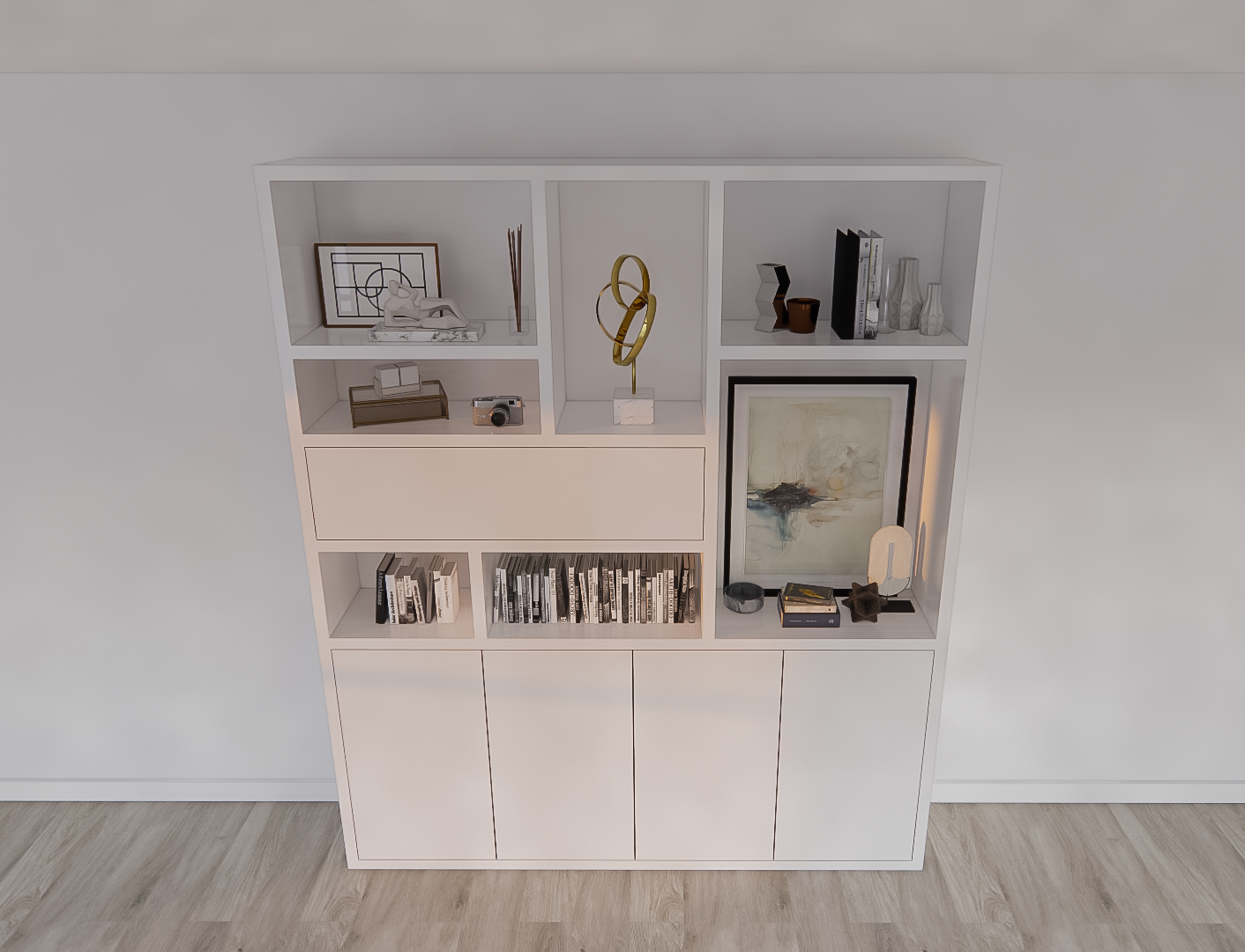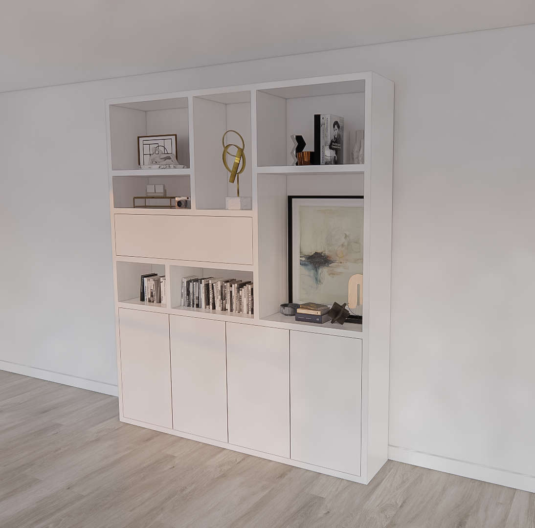 >Mit seiner Klapptür im Oberschrank bietet der Mastella Schrank eine praktische Aufbewahrungslösung für Dinge, die Sie nicht immer brauchen, während die offenen Fächer Platz für die Präsentation Ihrer Lieblingsstücke bieten. Die vier Push-to-Open-Türen im unteren Bereich ermöglichen einen einfachen Zugriff auf den Stauraum, ohne dass Griffe den cleanen Look stören.