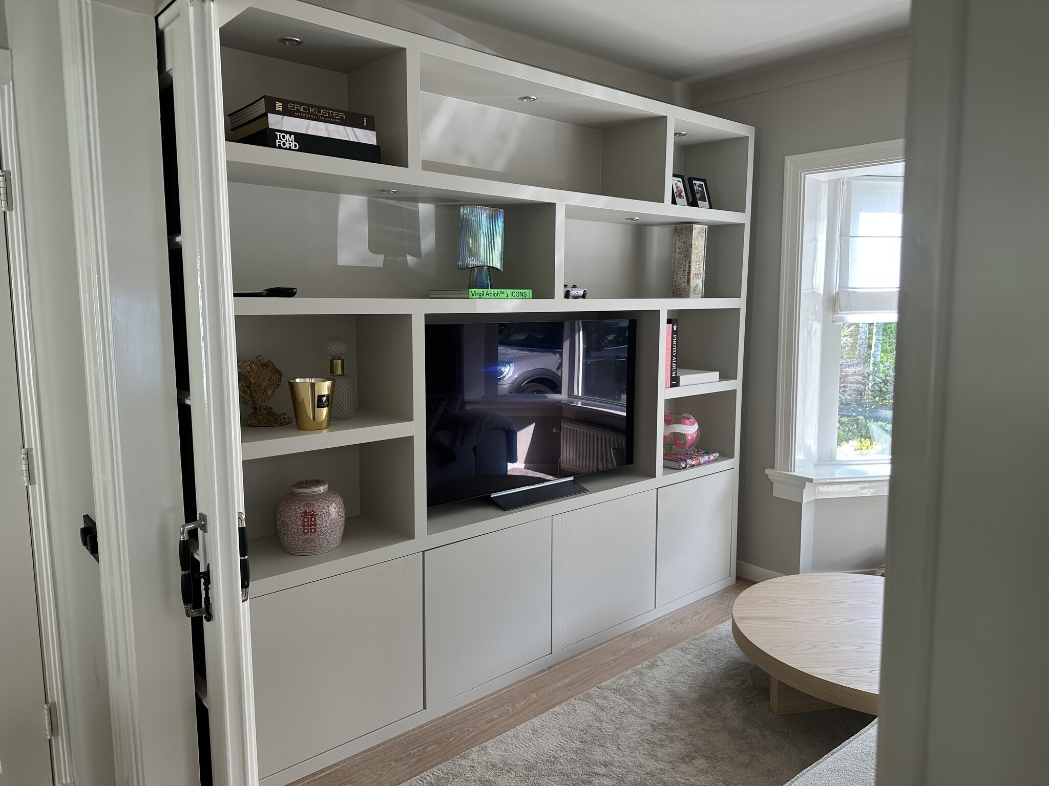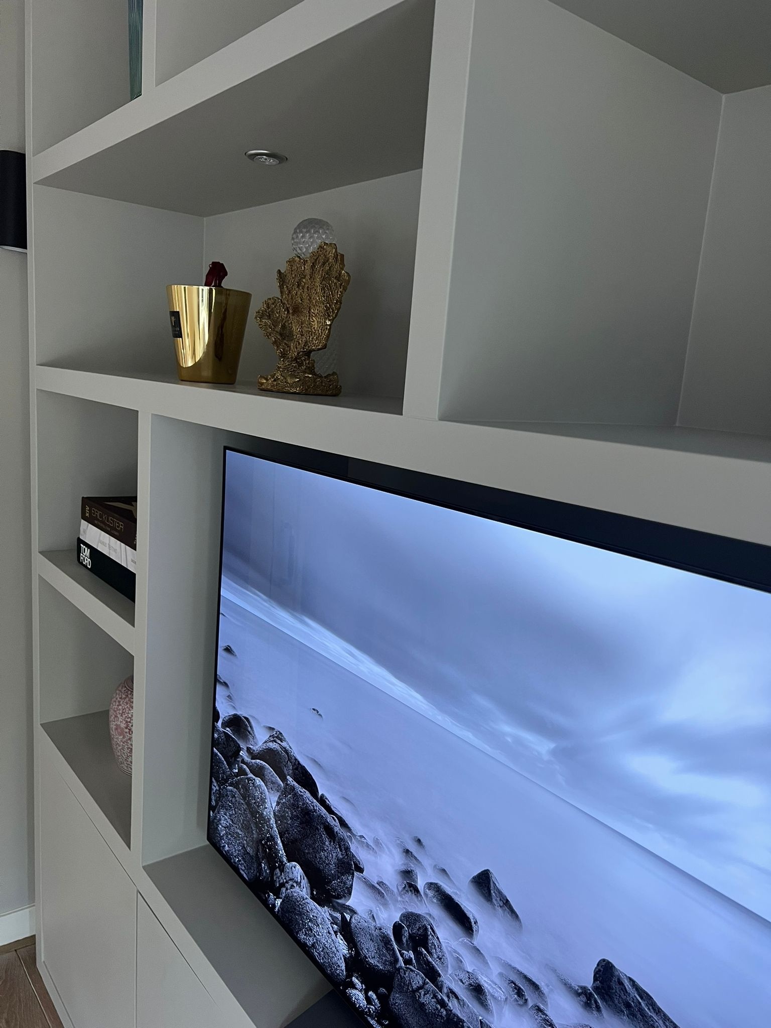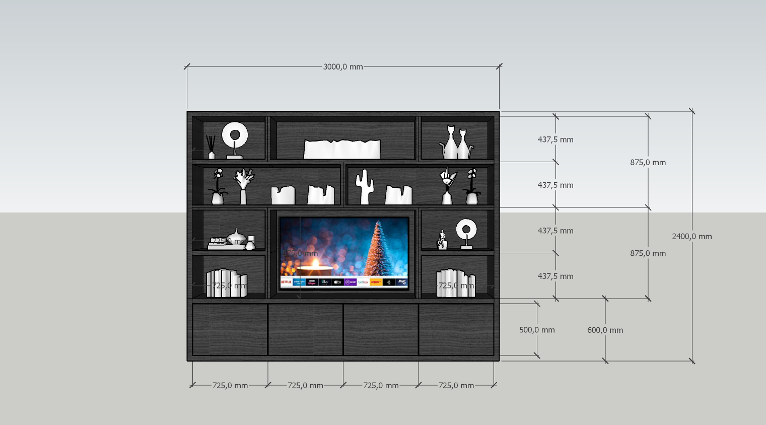 Unser schöner Fächerschrank Milan ist 300cm breit, 40cm tief und 240cm hoch und eignet sich perfekt zur Aufbewahrung all Ihrer Sachen. Der Schrank hat verschiedene Größen von offenen Fächern und in der Mitte befindet sich ein TV-Paneel, auf dem Sie Ihren Fernseher platzieren können, mit einem Loch in der Mitte für die Verkabelung des Fernsehers. Die vier Türen sind grifflos und sorgen für einen eleganten und modernen Look. Dieser stilvolle Schrank ist ein echter Blickfang in jedem Raum. Bestellen Sie das Regal Milan in einer RAL-Farbe Ihrer Wahl!