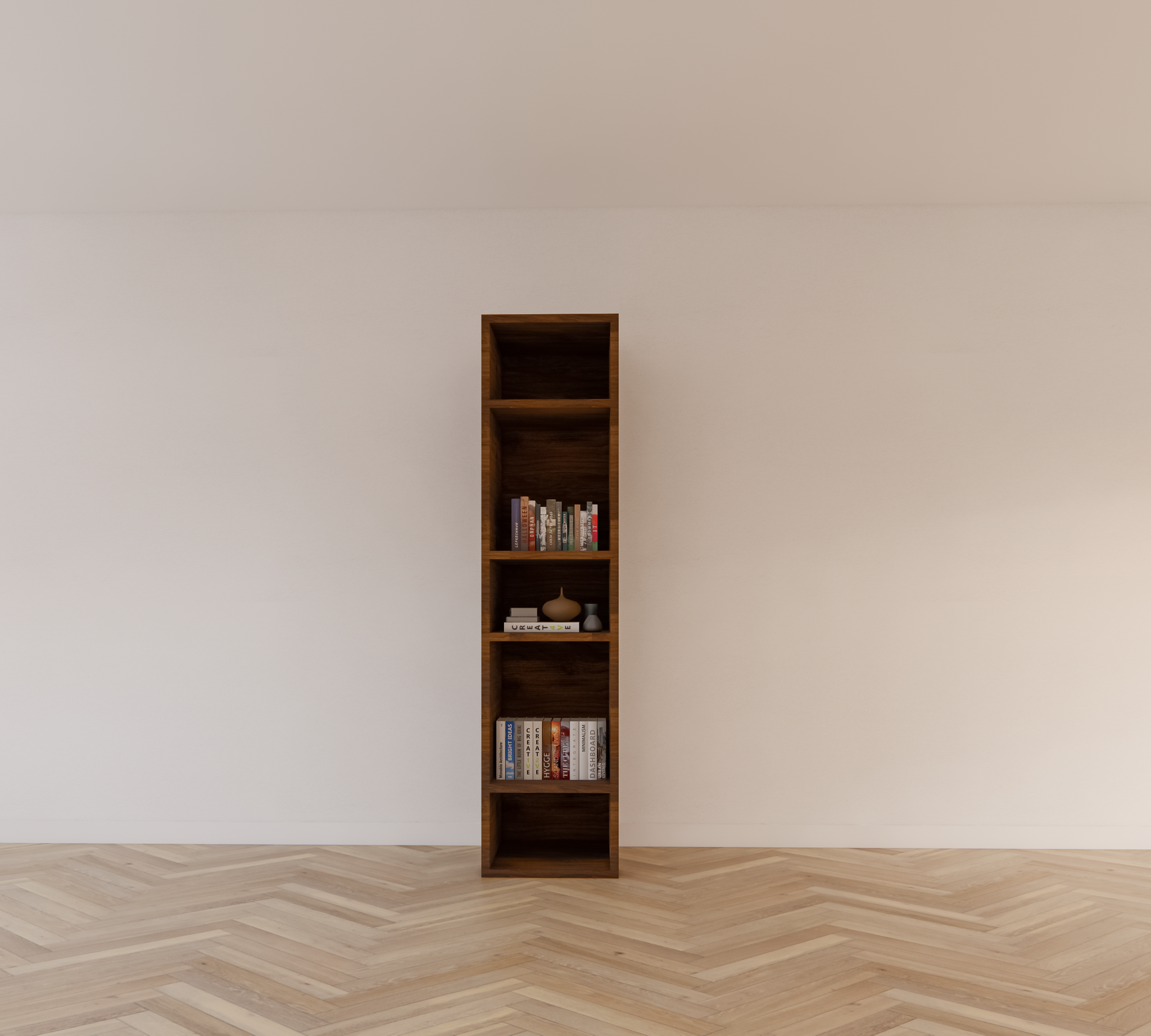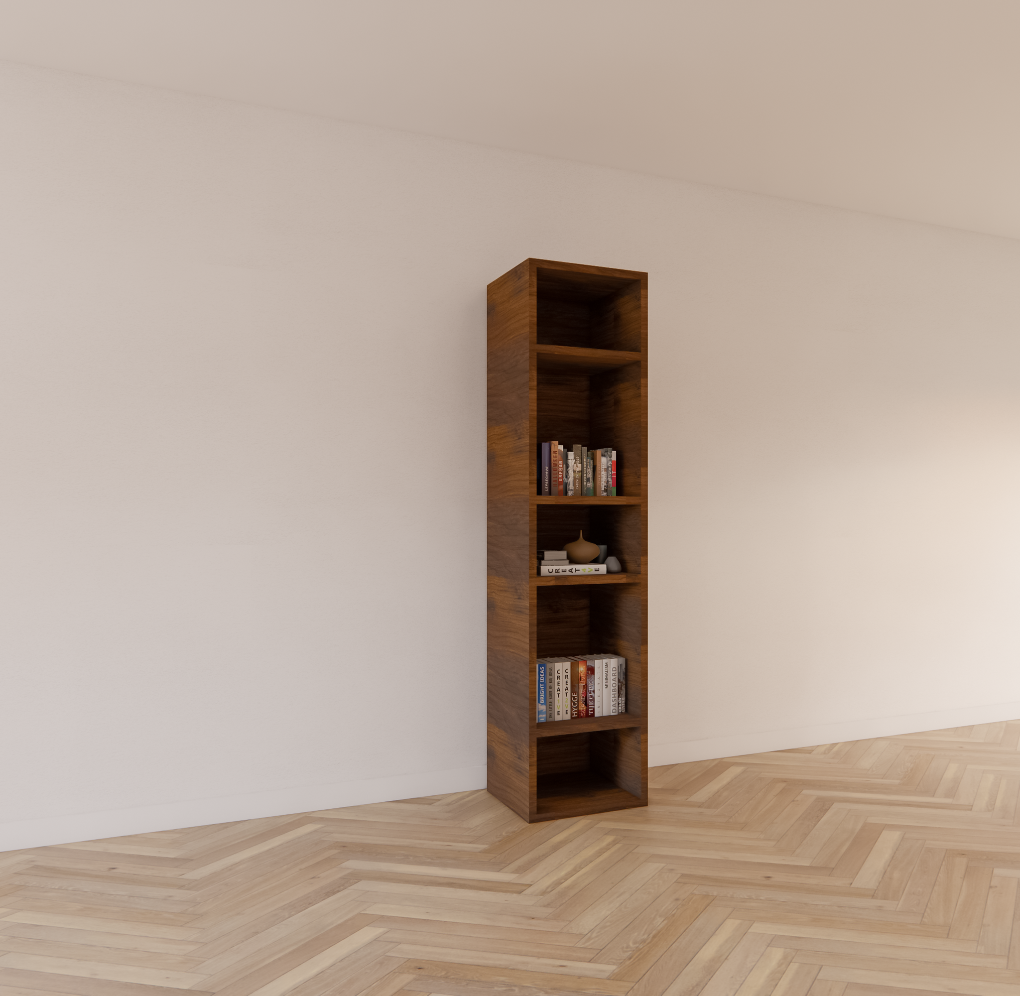 Der Schrank verfügt über offene Fächer, die Platz für Bücher, Accessoires oder Dekoration bieten. Die gleichmäßige Verteilung der Fächer sorgt für eine ruhige und aufgeräumte Optik. Dank seiner kompakten Größe fügt sich der Schrank mühelos in verschiedene Räume ein, wie z.B. Wohnzimmer, Arbeitszimmer oder Flure.