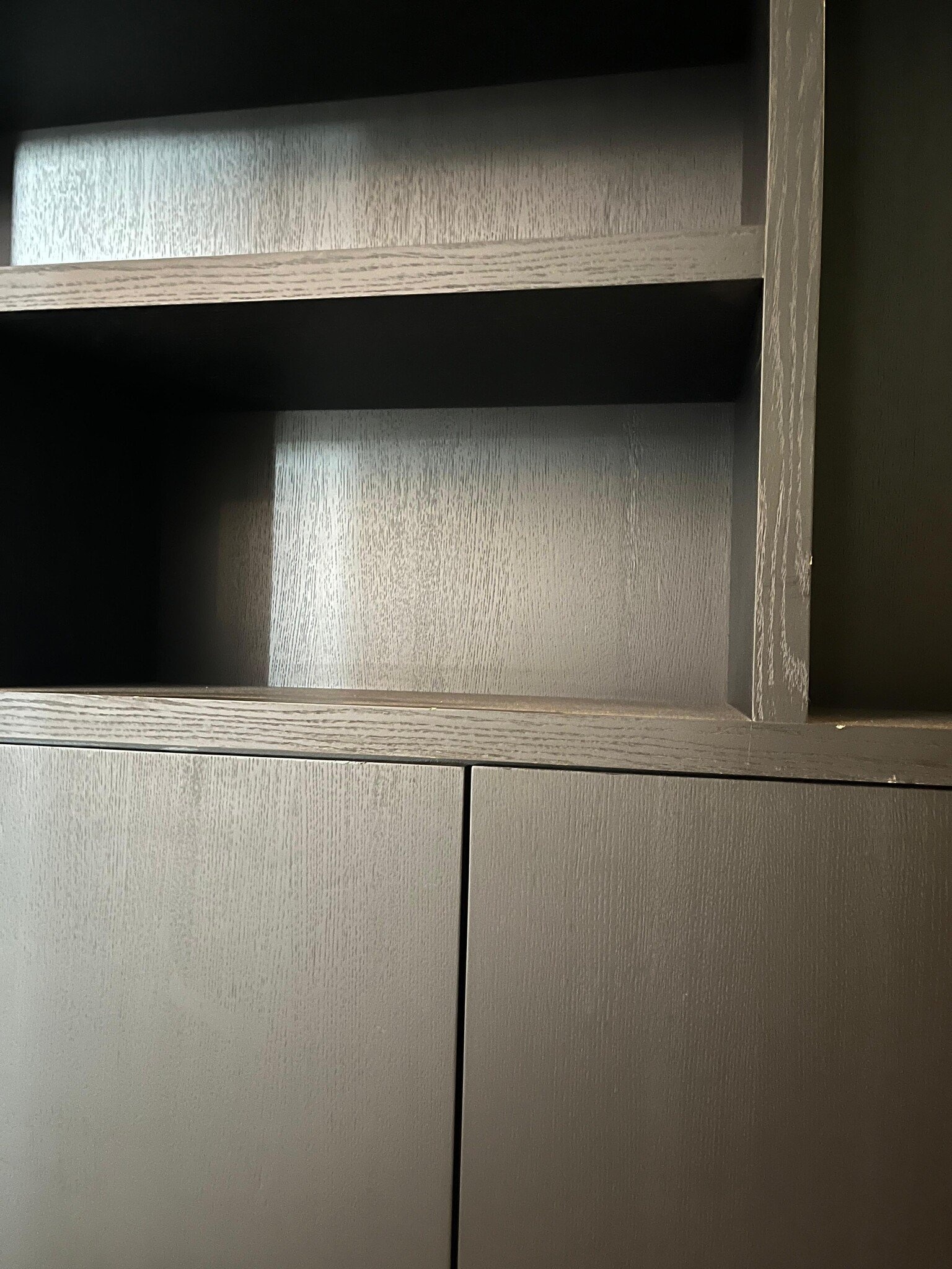 Ausstellungsstück Vitrinenregal Formentera - 200x35x235H cm - RAL 9005 Eiche schwarz
