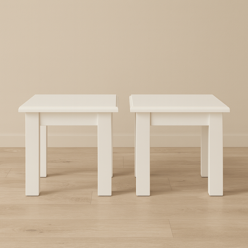 Ausgeführt in RAL 9010 (reinweiß) strahlen die Tische Frische und zeitlose Eleganz aus. Mit ihren kompakten Maßen von 50 x 50 x 50H cm sind sie ideal als Couchtisch, Pflanzentisch oder praktischer Beistelltisch neben dem Sofa oder Sessel. Dank ihres neutralen Designs passen sie mühelos sowohl in moderne als auch in ländliche Einrichtungen.