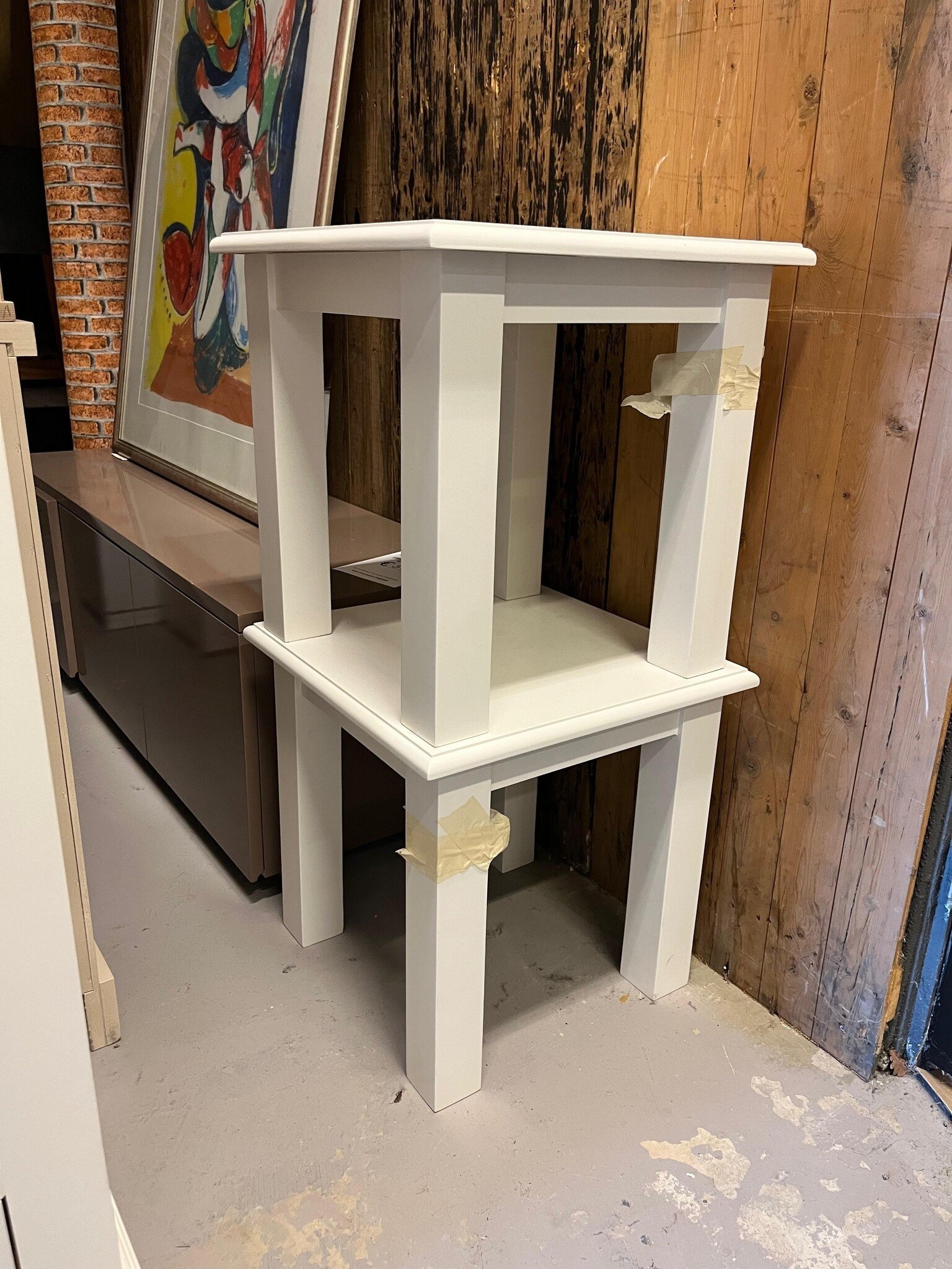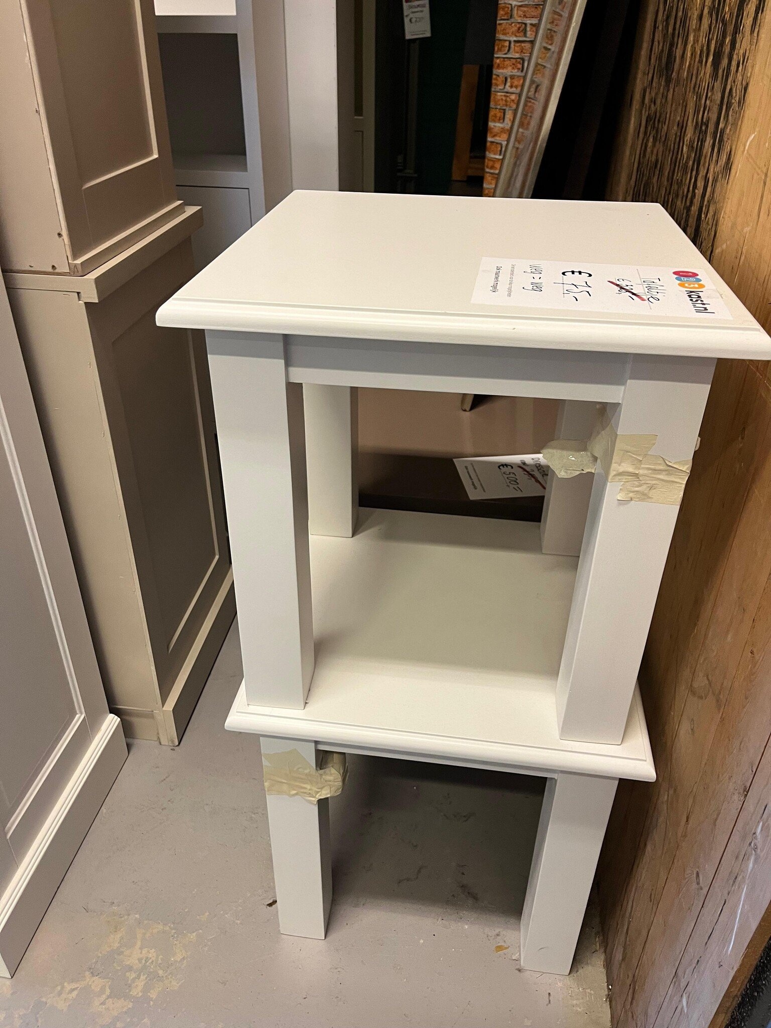Verleihen Sie Ihrem Interieur eine praktische und stilvolle Ergänzung mit diesen Nachtischen. Für nur 75€ pro Stück erhalten Sie einen vielseitigen Tisch, der sich in einem hervorragenden Zustand befindet. Die Tische wurden nie benutzt und standen nur im Ausstellungsraum.